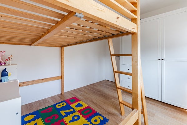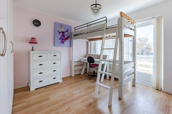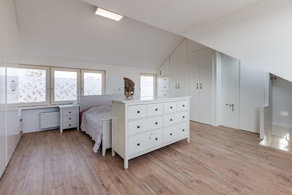 De kamer heeft een enorme lichtinval met de 8 te open ramen. Mocht u een extra slaapkamer nodig hebben dan is hier op deze verdieping zeker voldoende ruimte voor, door de verdieping in tweeën te delen.