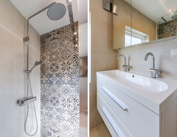 Op de eerste verdieping zijn twee ruime slaapkamers gelegen en twee badkamers. De beide badkamers zijn gerealiseerd in 2019. De grote badkamer is v.v. een groot ligbad, dubbel wastafelmeubel, wandcloset toilet, design radiator, vloerverwarming en een grote kast. De tweede badkamer is v.v. wederom een dubbel was-tafelmeubel, vloerverwarming en een inloopdouche. Verder is er op deze verdieping een praktische vaste kast waar de opstelplaats voor de wasmachine en wasdroger zich in bevindt.