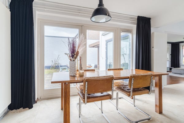 - De tussenwoning heeft een woonoppervlakte van 153 m² en beschikt over 8 kamers, waarvan 5 slaapkamers;