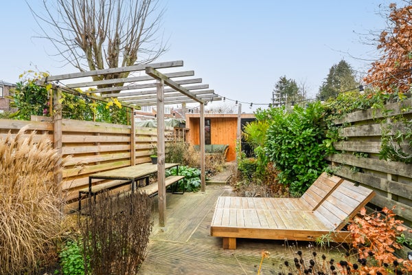 De woning heeft een royale west-georiënteerde achtertuin met veel privacy, en een nieuwe houten berging. Met een woonoppervlakte van circa 84 m² en een perceeloppervlakte van 147 m², biedt het twee slaapkamers, een moderne badkamer, en een sfeervolle woonkamer aan de voorzijde. Scholen, natuurgebieden, en openbaar vervoer zijn in de nabijheid aanwezig.