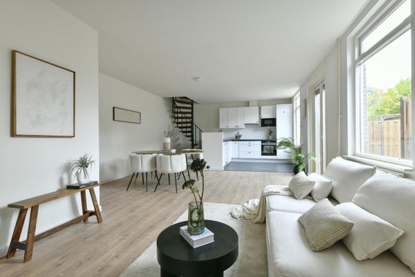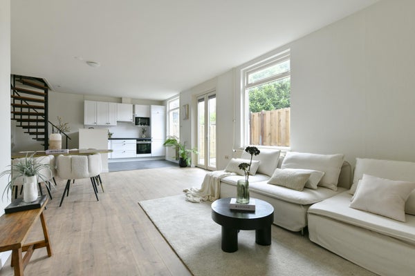 Deze charmante twee-onder-een-kapwoning, gebouwd in 1919 en in 1995 gemoderniseerd, is gelegen aan de Havenstraat 7C in het centrum van Hilversum. Met een woonoppervlakte van 104 m² biedt het huis een ruime woonkamer van 18 m² met nieuwe laminaatvloer en openslaande deuren naar de besloten zijtuin van ca. 28 m². De open keuken is uitgerust met luxe inbouwapparatuur. Op de eerste verdieping bevinden zich twee slaapkamers, een badkamer met toilet, wastafel en douche, en een overloop met wasmachineaansluiting. Het energielabel A+ en de ligging nabij winkels, horeca, scholen en sportfaciliteiten maken het wonen hier aantrekkelijk. De VvE is in oprichting, met een geschatte maandbijdrage van ca. € 200.