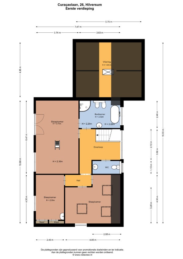 - De tussenwoning heeft een woonoppervlakte van 352 m² en beschikt over 5 kamers, waarvan 4 slaapkamers;