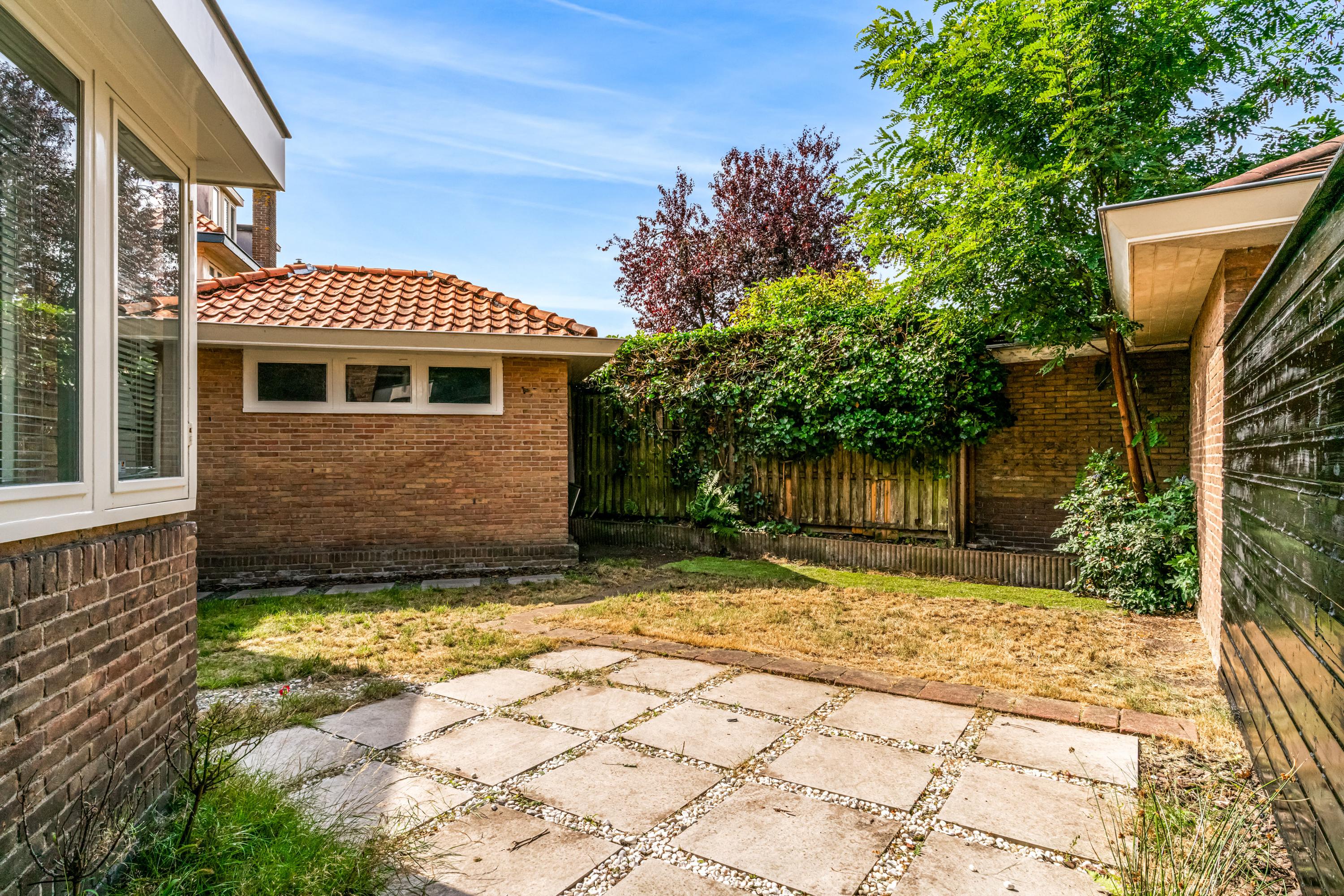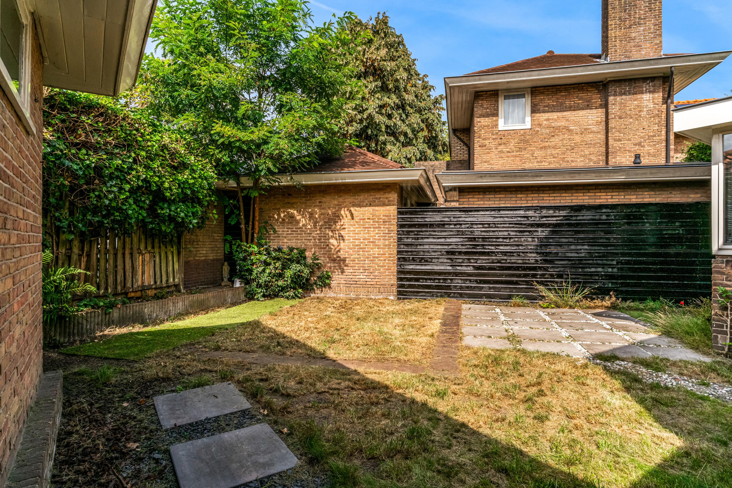 Het huis beschikt over een ruime hal met bordestrap, een lichte woonkamer met grote raampartijen, een keuken met openslaande deuren naar de tuin, vier slaapkamers en een badkamer die toe is aan modernisering. De buitenruimte, met een zonnige achtertuin en ruime oprit, biedt volop mogelijkheden voor ontspanning. Als gemeentelijk monument biedt deze woning zowel charme als potentieel voor modernisering.