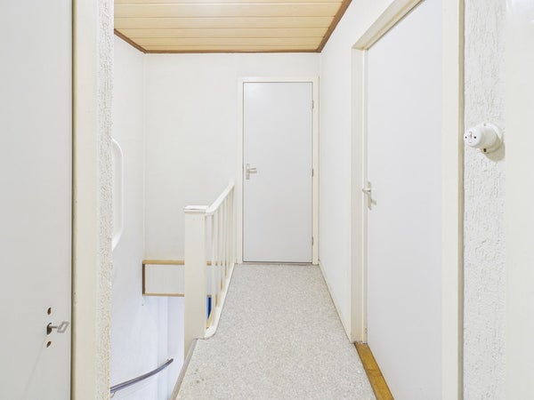 Overloop met toegang naar 3 slaapkamers en badkamer. Een van de slaapkamers beschikt over de aansluiting van de wasmachine en is dan ook ingericht als wasruimte. De badkamer is volledig betegeld en beschikt over een douche en wastafel.