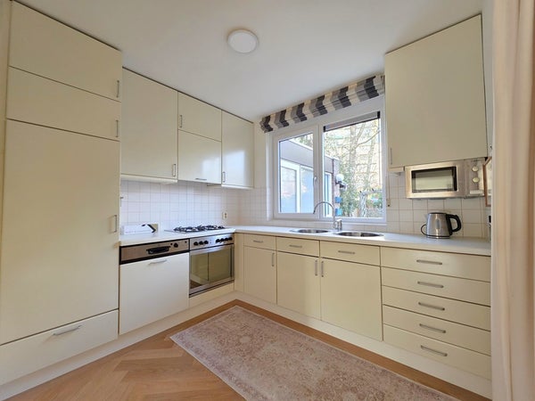 De eetkamer en keuken zijn voorzien van een mooie eiken parketvloer (ca. 2022) en de woonkamer van carrara marmeren vloertegels. Dit maakt meteen een wat chique en tijdloze indruk.