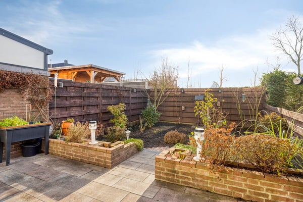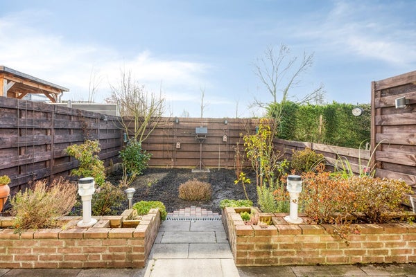 Aan de achterzijde beschikt de woning over een achtertuin van circa 43 m², een fijne plek om te ontspannen, te barbecueën of gezellig buiten te zitten zonder veel onderhoud.