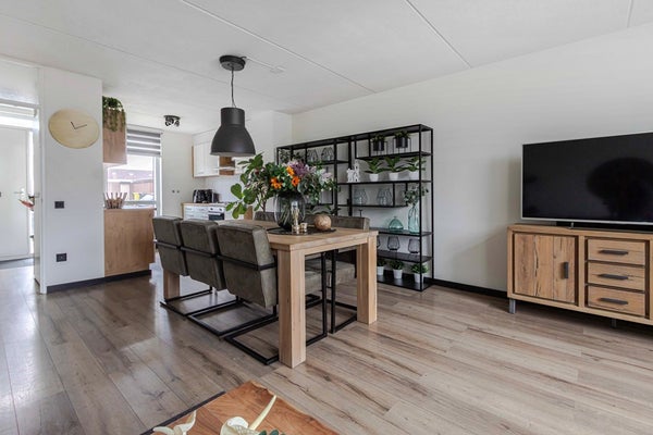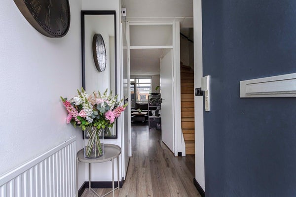 Bij binnenkomst ervaar je direct de verzorgde en warme sfeer van de woning. De nette laminaatvloer, die grotendeels is doorgelegd over de begane grond, zorgt voor een rustige en moderne uitstraling.