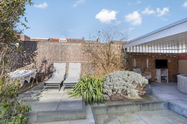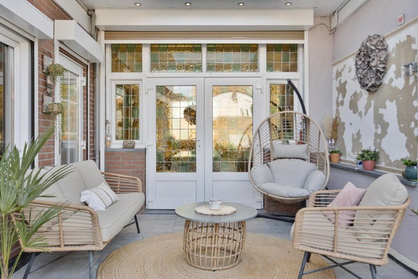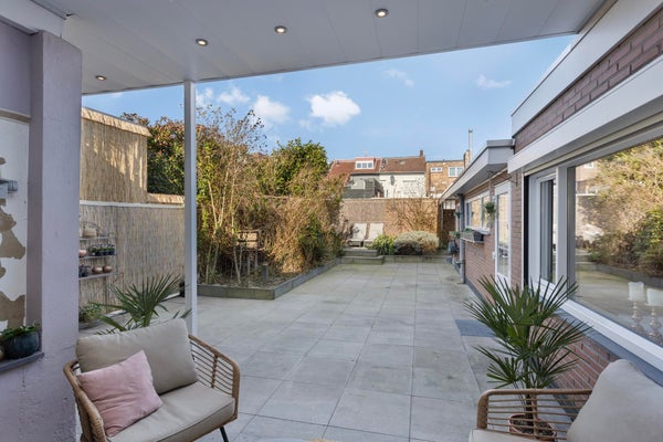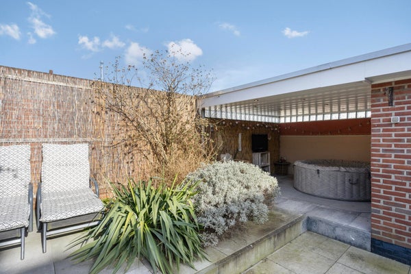 De woning beschikt over meerdere overkappingen en een omsloten tuin, wat zorgt voor beschutte zitmogelijkheden en extra gebruikscomfort.