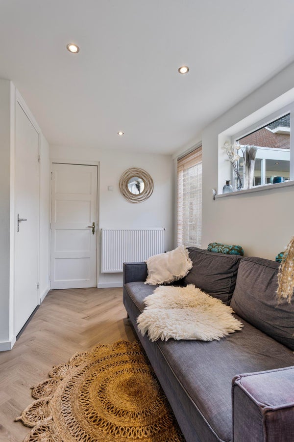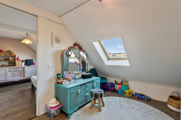 Aan de achterzijde bevindt zich een extra kamer, ideaal als slaapkamer, kantoor of praktijkruimte, met daarnaast een toiletruimte en een inpandige berging.