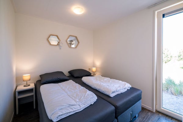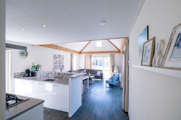 Deze charmante 6-persoons Duinvilla nabij de zee op Ameland, gelegen op Vakantiepark Boomhiemke in Hollum, biedt alles voor een ideaal verblijf. De goed onderhouden woning beschikt over een lichte living met loungehoek, eethoek en een moderne keuken. De keuken is compleet uitgerust met een kookeiland, koel-vriescombinatie, combimagnetron, oven, vaatwasser en gasstel met afzuigkap. Er zijn drie slaapkamers, waarvan twee met aaneengeschoven éénpersoonsbedden en één met een stapelbed, ideaal voor comfort en opbergruimte. De nette badkamer is voorzien van een douchecabine en wastafel. Buiten vindt u een betegeld terras met tuinmeubilair, perfect voor ontspanning. De woning wordt verwarmd via CV en is inclusief inventaris.