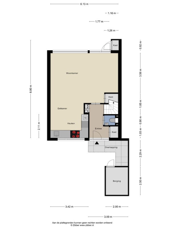 - Aanwezig (54 m², gelegen op het zuidwesten)