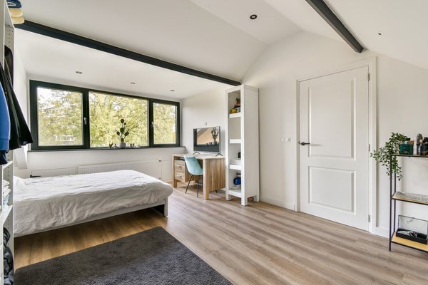 On the first floor, there are three spacious bedrooms. The master bedroom is located at the front of the house and is equipped with an electrically operated sunshade. The modern bathroom features a spacious rain shower and double sink. The recently renovated attic has a dormer that spans the entire width at the back of the house. On this floor, you will also find the fourth bedroom (with roller shutter) and a spacious attic that can be used as a work and laundry room. This space is also ideal for use as an additional bedroom.