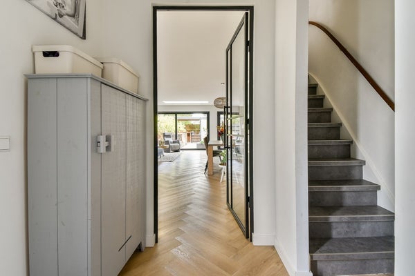 Bij binnenkomst in de ruime hal ervaart u direct de nette afwerking en de warme sfeer. De in 2022 uitgebouwde woonkamer, voorzien van een chique PVC visgraatvloer en vloerverwarming, is het hart van de woning. De grote schuifpui en een lichtstraat zorgen voor een overvloed aan natuurlijk licht en een open verbinding met de moderne keuken, compleet met Whirlpool apparatuur en een Quooker kraan.