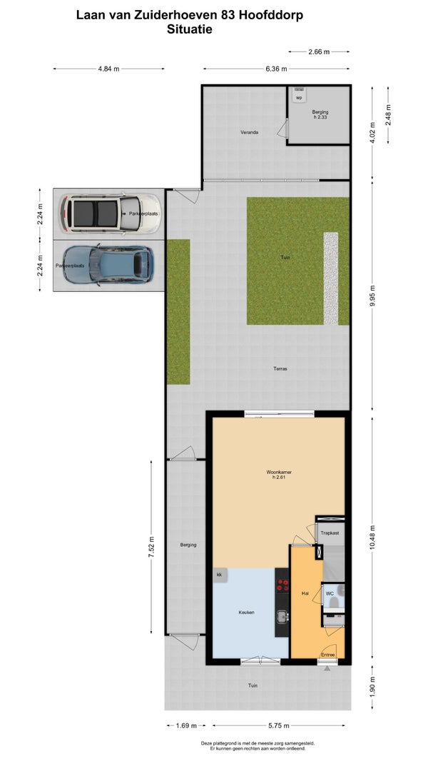 - Aanwezig (109 m², gelegen op het zuidwesten)