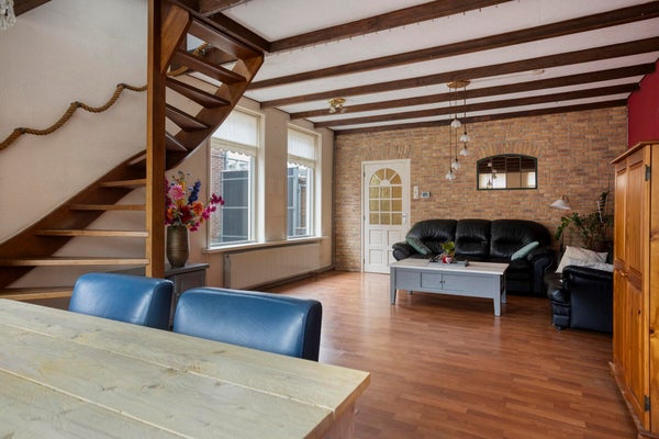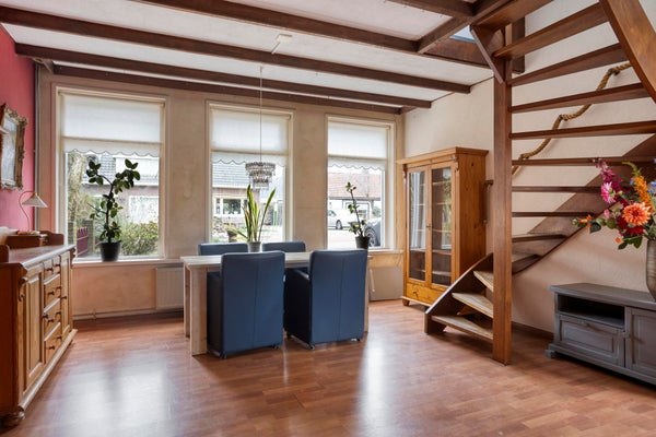 Wonen aan de Stationsweg betekent wonen in een huis met geschiedenis. Deze karakteristieke woning uit 1901 heeft een eigen uitstraling, met zichtbare houten balken en een indeling die net even anders is dan u verwacht. Achter de gevel schuilt een verrassend praktische woning waarin licht, houtaccenten en speelse zichtlijnen voor sfeer zorgen. De open trap in de woonkamer versterkt dat gevoel van dynamiek en geeft de leefruimte een eigen uitstraling.