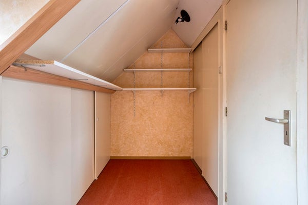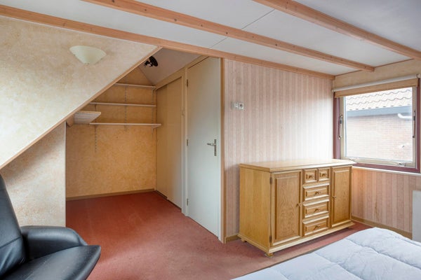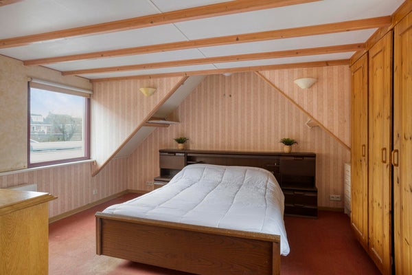 De verdieping is bereikbaar via zowel de trap in de hal als de trap in de woonkamer. Deze dubbele ontsluiting maakt de toegang praktisch en geeft de woning een eigen karakter. Boven bevinden zich drie slaapkamers, elk met een eigen indeling door de schuine kap en aanwezige dakkapellen. De grootste kamer biedt ruimte voor een tweepersoonsbed en kastruimte, en de overige kamers lenen zich uitstekend als kinder-, werk- of hobbykamer. Ingebouwde bergruimte onder de kap zorgt ervoor dat de vierkante meters efficiënt worden benut.