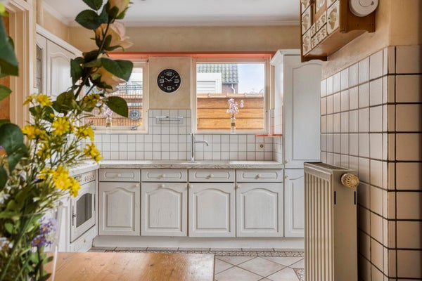 De badkamer bevindt zich op de begane grond, wat de indeling flexibel maakt en prettig in gebruik. Boven bevinden zich drie slaapkamers onder de kap, waar schuine lijnen en ingebouwde kastruimte het karakter van het bouwjaar voelbaar maken. Op het perceel van 210 m² vindt u bovendien een opvallend ruime dubbele berging, en parkeert u eenvoudig op eigen terrein. Met 101 m² woonoppervlakte is dit een woning waarin historie en functionaliteit op een natuurlijke manier samenkomen.