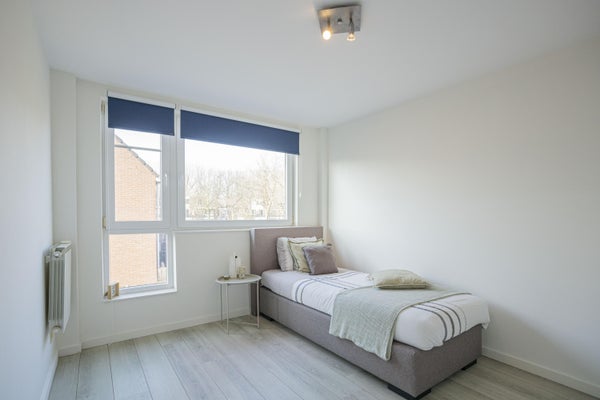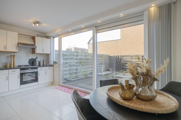 Deze gezinswoning is te koop en biedt een rustige woonlocatie met eigen parkeerplaats in de kindvriendelijke wijk Bornholm. Met ongeveer 106 m² woonoppervlakte en een perceel van circa 145 m², beschikt de woning over 3 slaapkamers en heeft een energielabel C. De indeling begint op de begane grond met een lichte woonkamer en openslaande deuren naar de achtertuin, die op het noordwesten ligt. De open keuken aan de achterzijde is voorzien van verschillende inbouwapparatuur. De eerste verdieping heeft een ruime slaapkamer, een tweede slaapkamer en een badkamer met vloerverwarming. De tweede verdieping biedt een grote slaapkamer met een Velux dakraam. De woning is deels voorzien van kunststof kozijnen met HR++ beglazing en is goed bereikbaar vanuit nabijgelegen voorzieningen.