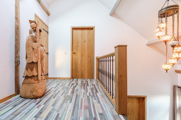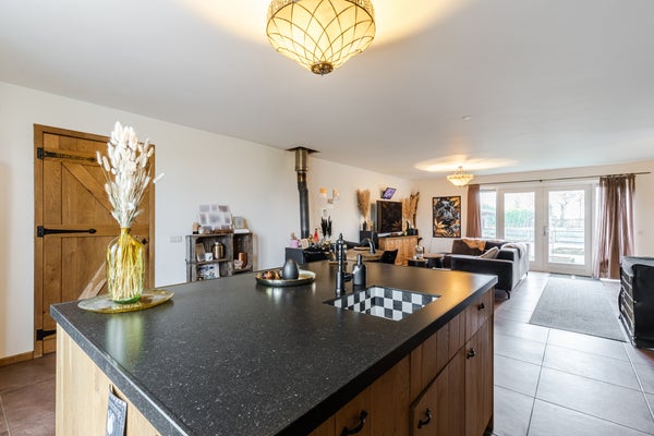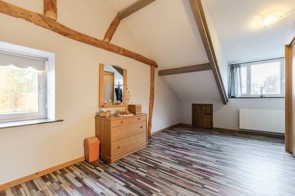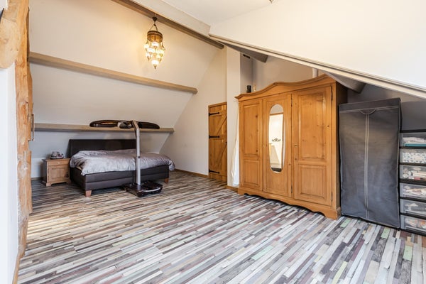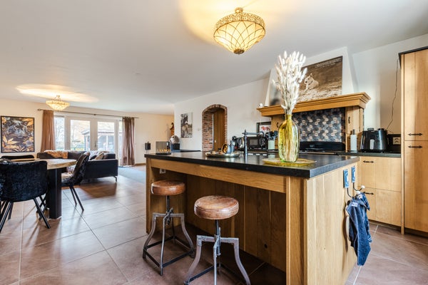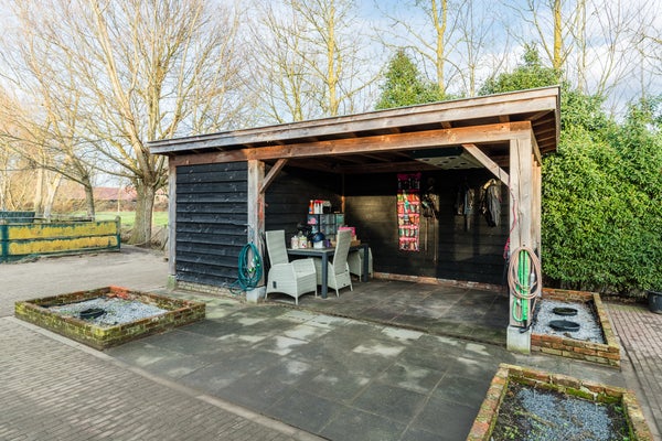 Verder beschikt het over een vrijstaande garage van 78 m², paardenstallen en duurzame voorzieningen zoals zonnepanelen en een hybride warmtepomp. Met drie slaapkamers, twee badkamers en voldoende ruimte voor gasten of als praktijk aan huis biedt deze woning eindeloze mogelijkheden voor comfortabel landelijk wonen.
