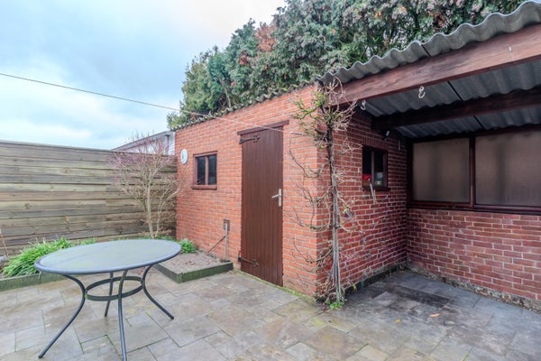 Deze degelijke tussenwoning in Hoogerheide is ideaal voor starters. De woning, gebouwd in 1965, biedt 78 m² woonoppervlakte en een perceel van 167 m². Op de begane grond vindt u een doorzonwoonkamer met gashaard, die doorloopt naar de moderne keuken met inbouwapparatuur. Verder zijn er op deze verdieping een hal, toilet en trapopgang naar de eerste verdieping. Hier bevinden zich drie slaapkamers en een badkamer met douche en wastafel. Via een vlizotrap komt u op de ruime zolder. De achtertuin met terras, kunstgrasgazons en een vrijstaande berging biedt veel mogelijkheden, terwijl de voortuin met beplanting ook aantrekkelijk is. De woning is goed bereikbaar en gelegen nabij voorzieningen zoals scholen en supermarkten. Energielabel D.