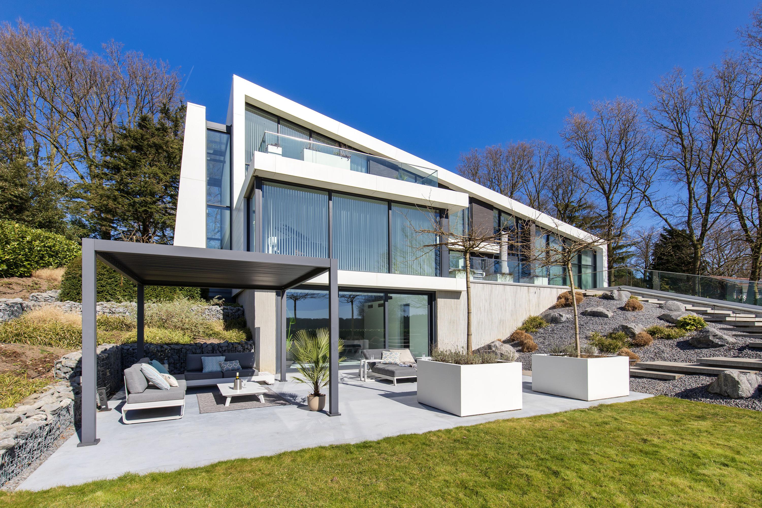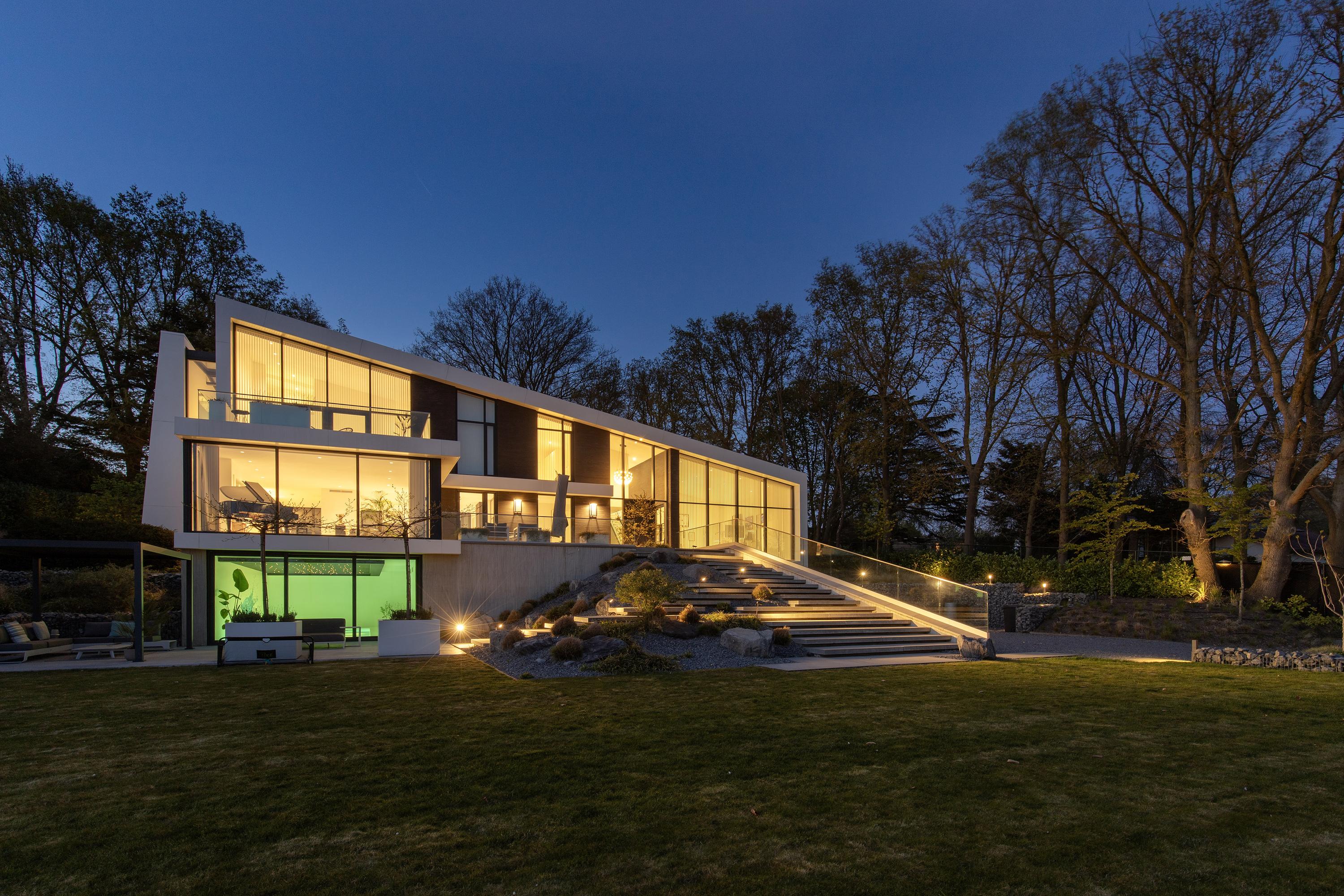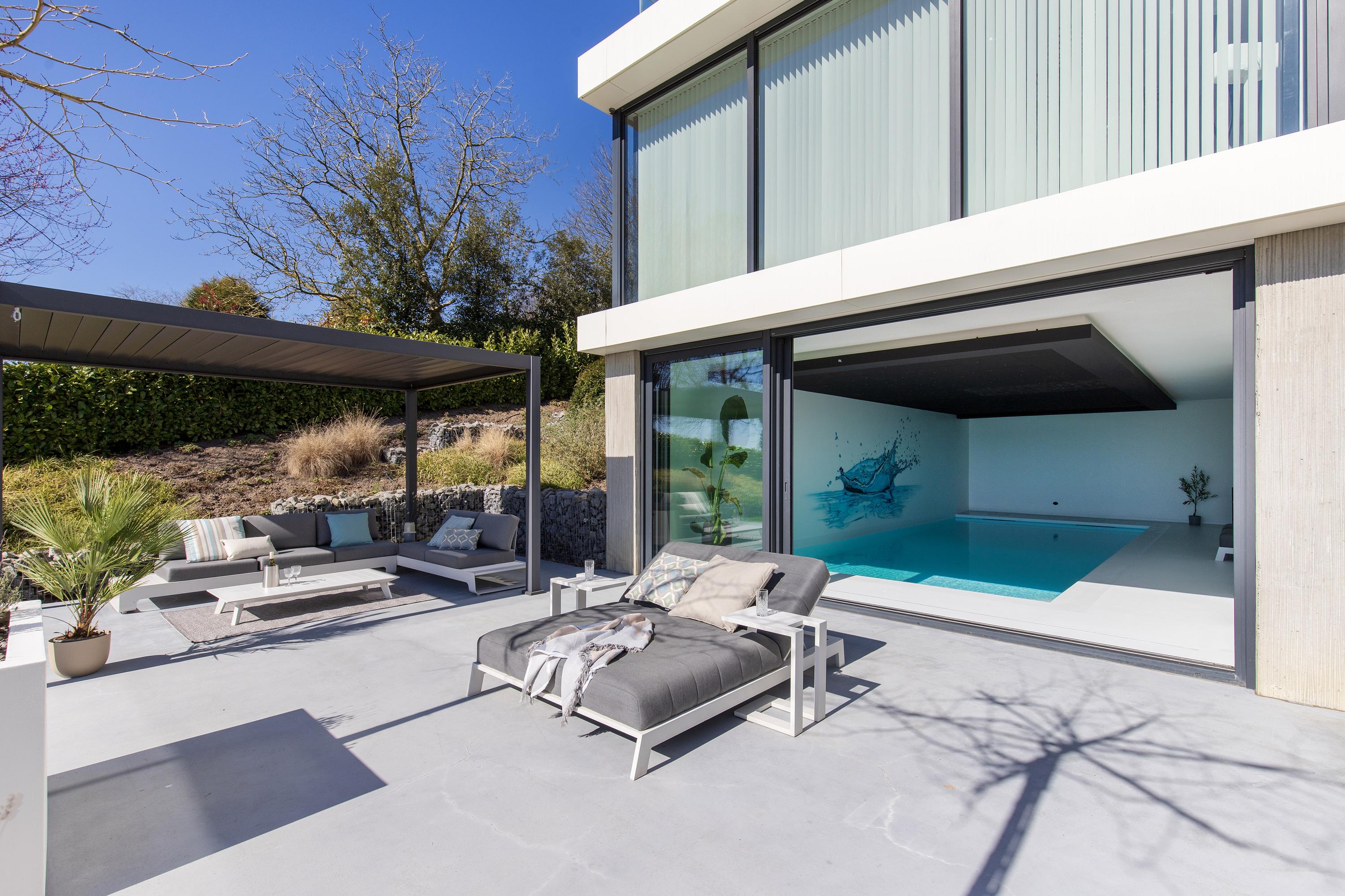 Deze moderne villa, gebouwd in 2021, biedt luxe en duurzaamheid aan de rand van Hoogerheide. Met een woonoppervlakte van circa 444 m² en een perceel van 6.667 m², omarmt de villa een prachtig uitzicht op een natuurgebied. Bij binnenkomst in de ruime hal voel je direct de luxe uitstraling door de hoge plafonds en elegant ontwerp. De eerste verdieping beschikt over een indrukwekkende woonkamer met open keuken, die beide een spectaculair uitzicht bieden door grote raampartijen. De luxe keuken is volledig uitgerust met moderne apparatuur. Ook vind je hier een multifunctionele ruimte van 40 m², momenteel als fitnessruimte. De villa heeft 4 slaapkamers en 3 badkamers, waaronder een luxe badkamer met ligbad en inloopdouche. Het binnenzwembad, verwarmd door een warmtepomp, sluit aan op het terras. Een dubbele garage en een prachtig aangelegde tuin maken dit huis compleet. Met energielabel A++++ is het ook nog eens zeer energiezuinig, wat bijdraagt aan een comfortabele en duurzame levensstijl.