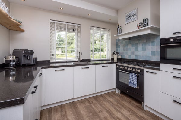 In het hart van Hoogkarspel bevindt zich een royaal herenhuis met een uitbouw en een aangebouwde garage, omringd door een indrukwekkende achtertuin van 42 meter diep. Deze tuin biedt rust en privacy. De woning, in 2018 grondig verbouwd, heeft een stijlvolle afwerking met een moderne keuken en hoogwaardige inbouwapparatuur. Op de begane grond zijn er vier slaapkamers en een badkamer met inloopdouche. De vernieuwde 2e verdieping herbergt een grote 5e slaapkamer, een 2e badkamer met ligbad en inloopdouche, en tal van dakramen voor lichtinval. De 3e verdieping biedt extra bergruimte. Het perceel is 526 m² groot, met een woonoppervlakte van 161 m² en zeven kamers in totaal. De woning is goed onderhouden en gedeeltelijk gestoffeerd. Oplevering is gepland voor 4 juni 2026.