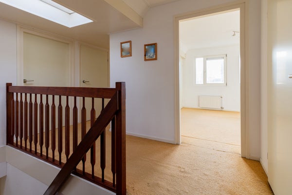 Deze vrijstaande woning, gelegen op een royaal perceel van 634 m² aan het water, biedt 160 m² woonoppervlakte en een prachtige tuin rondom. De lichte hal brengt je naar de woonkamer, die meerdere zithoeken heeft en veel daglicht ontvangt door de grote raampartijen. Openslaande deuren leiden naar de verzorgde tuin, een ideale plek om te ontspannen. De ruime keuken is van alle gemakken voorzien en aansluitend is er een praktische bijkeuken. Op de eerste verdieping zijn vier ruime slaapkamers aanwezig, perfect voor een gezin of als werk- en logeerruimte. De moderne badkamer heeft een ligbad, inloopdouche, dubbele wastafel en toilet. De verwarmde garage biedt ruimte voor één auto. Deze woning combineert leefruimte, rust en mogelijkheden.