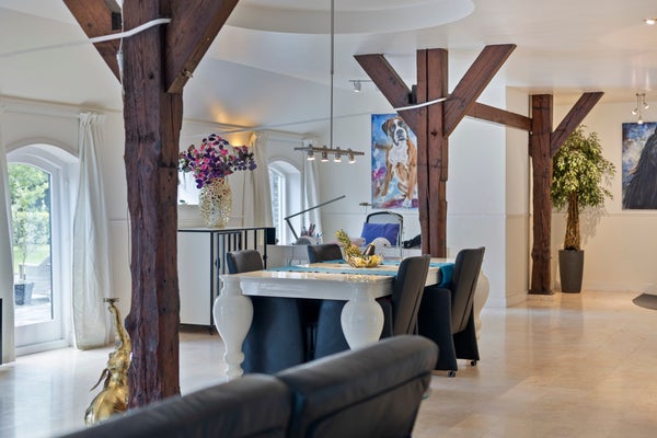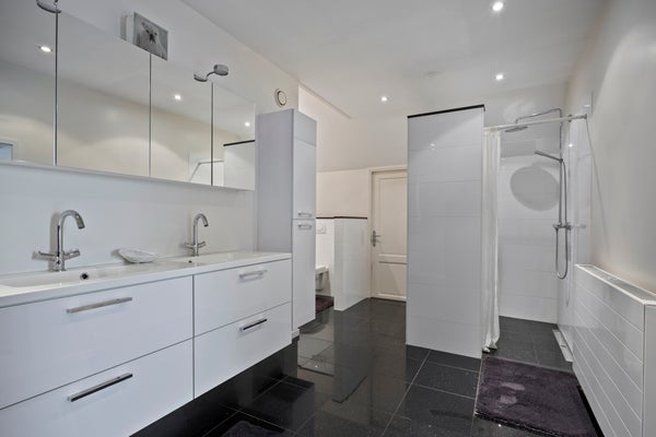 - De tussenwoning heeft een woonoppervlakte van 450 m² en beschikt over 9 kamers, waarvan 6 slaapkamers;