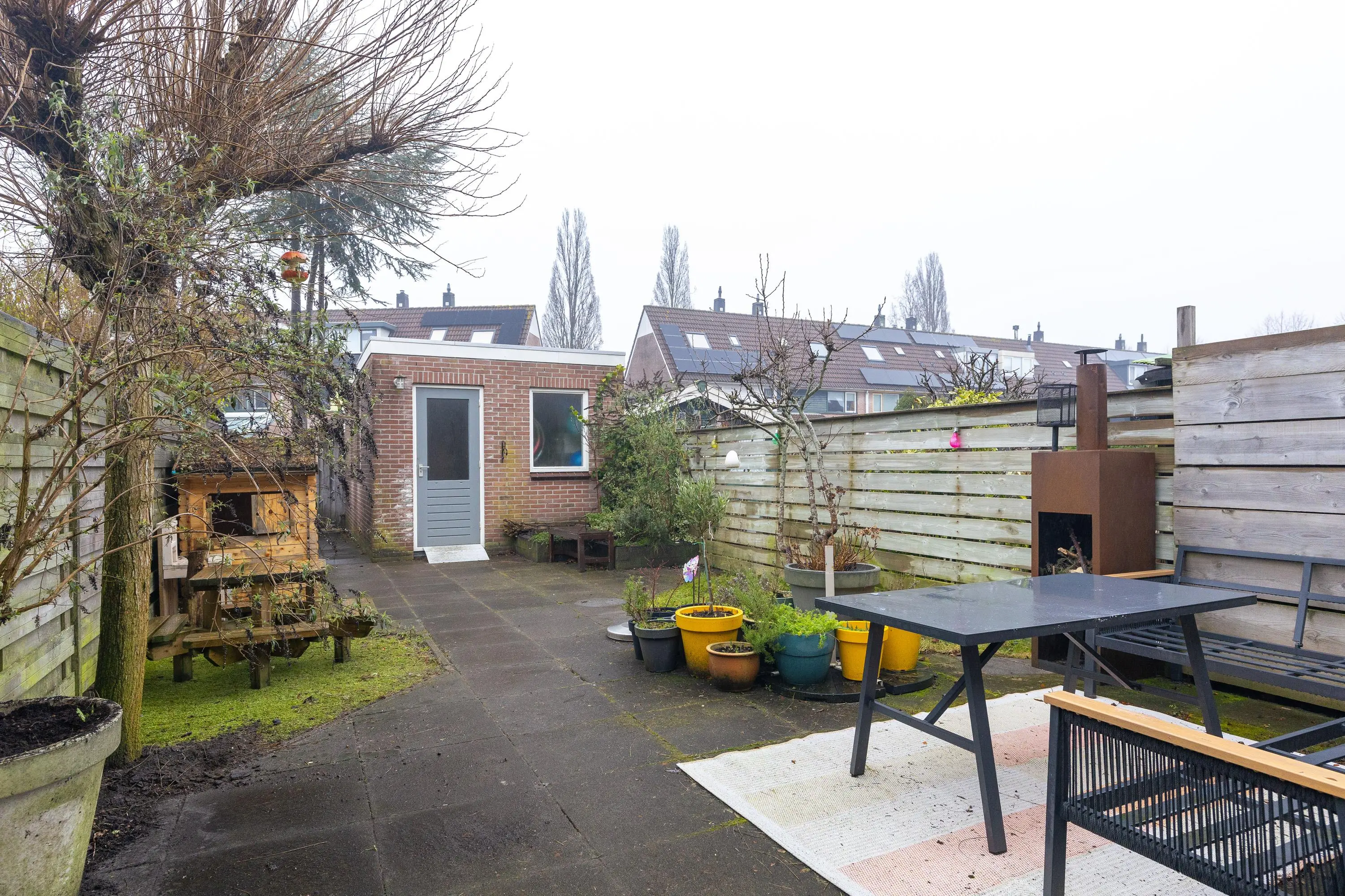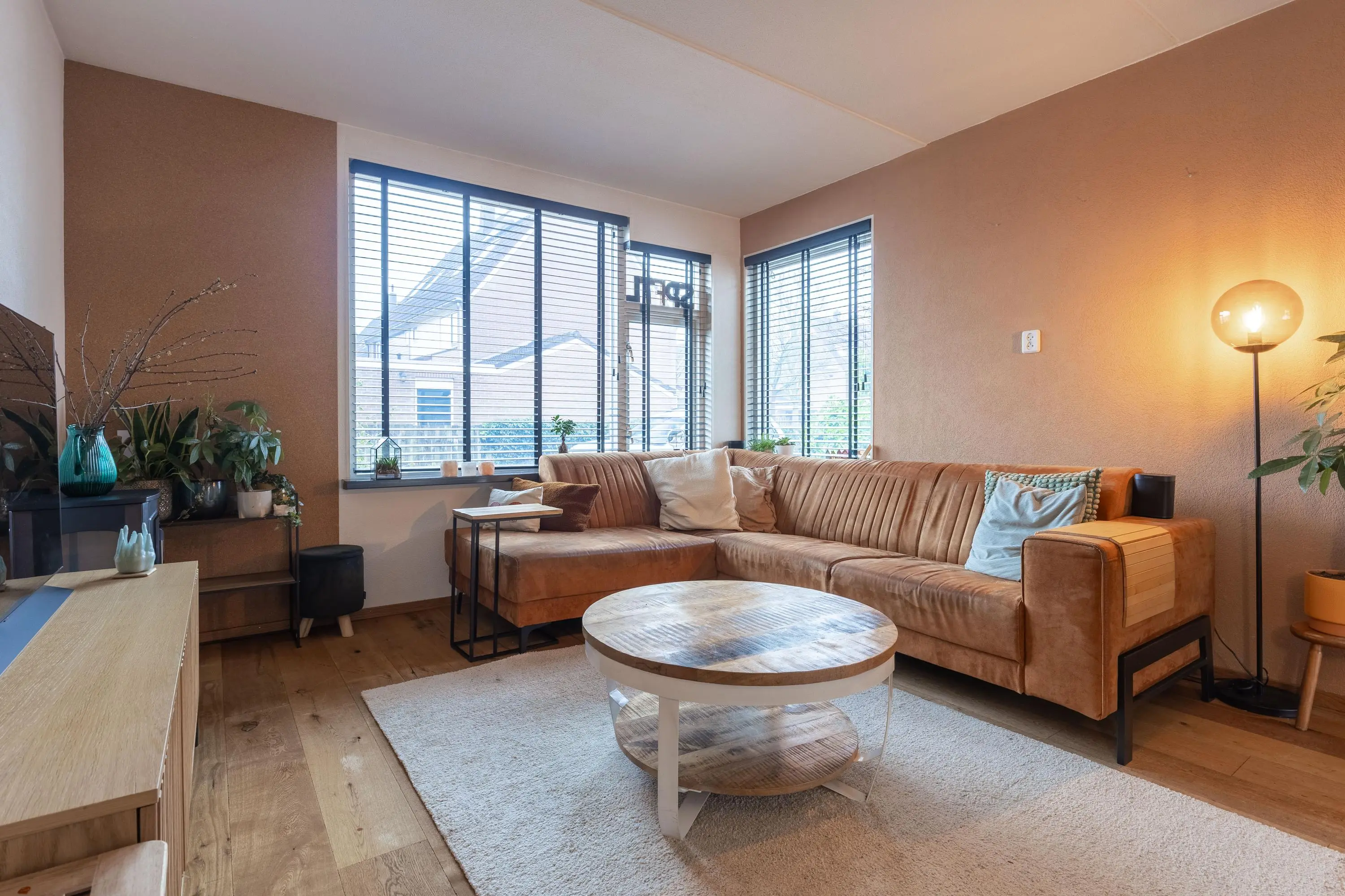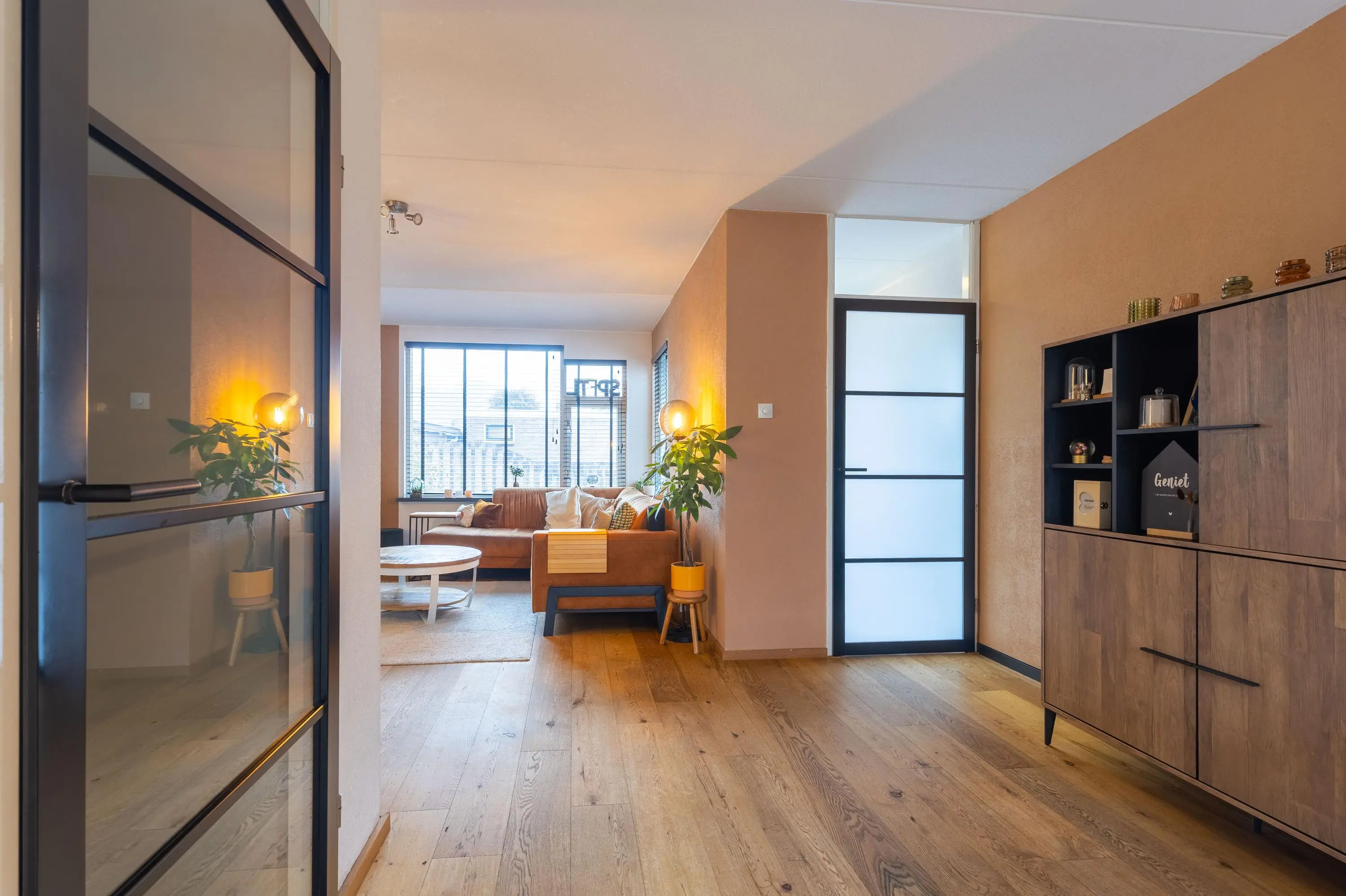 In een rustige en kindvriendelijke omgeving staat deze uitstekend onderhouden gezinswoning met vier slaapkamers. De lichte woonkamer, voorzien van een massief eiken vloer, leidt via een schuifpui naar de aangebouwde veranda, waar binnen en buiten samenkomen. De zonnige tuin op het noordwesten biedt privacy en een fijne plek om te ontspannen, met een ruime vrijstaande stenen schuur voor extra opslag.