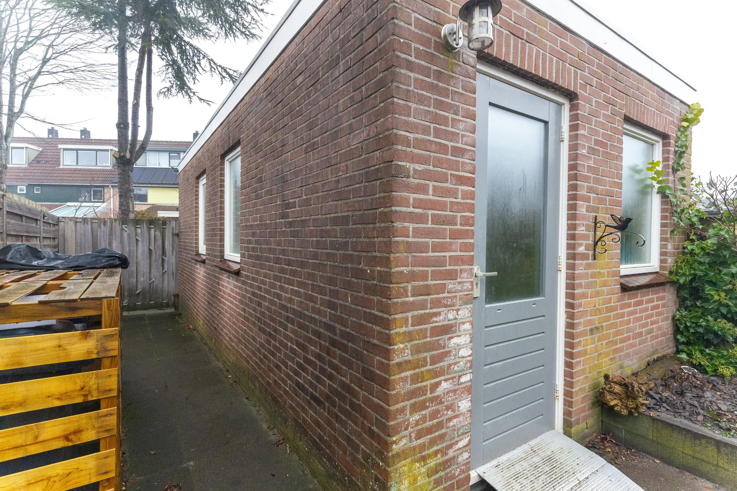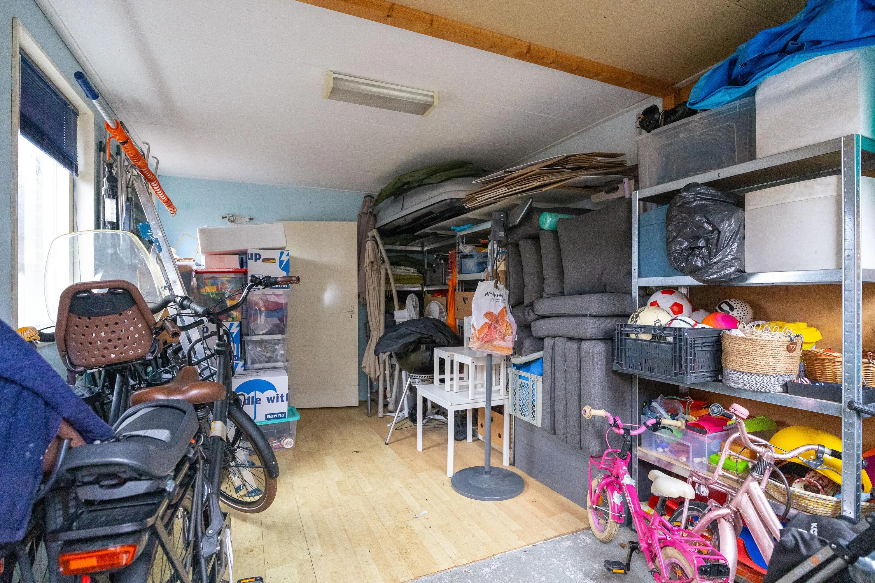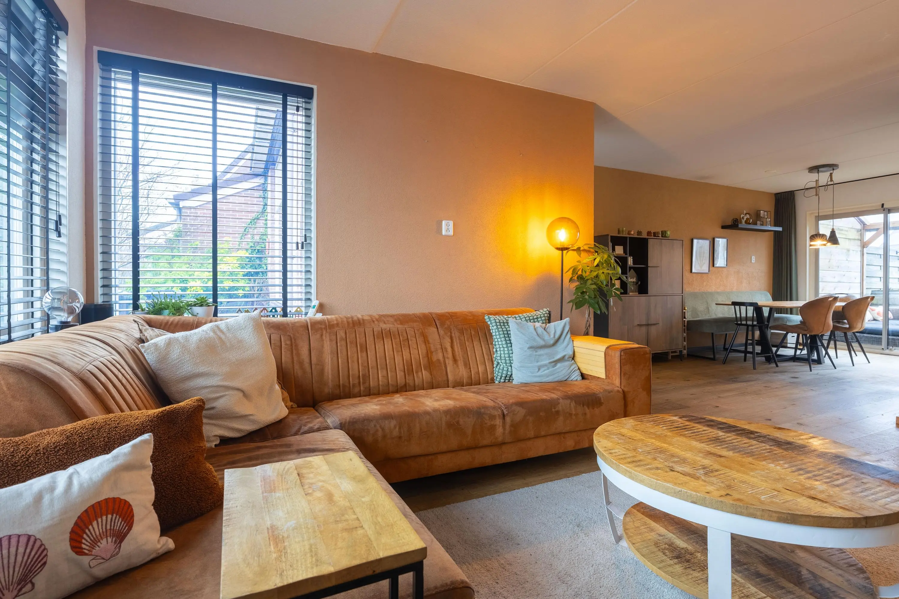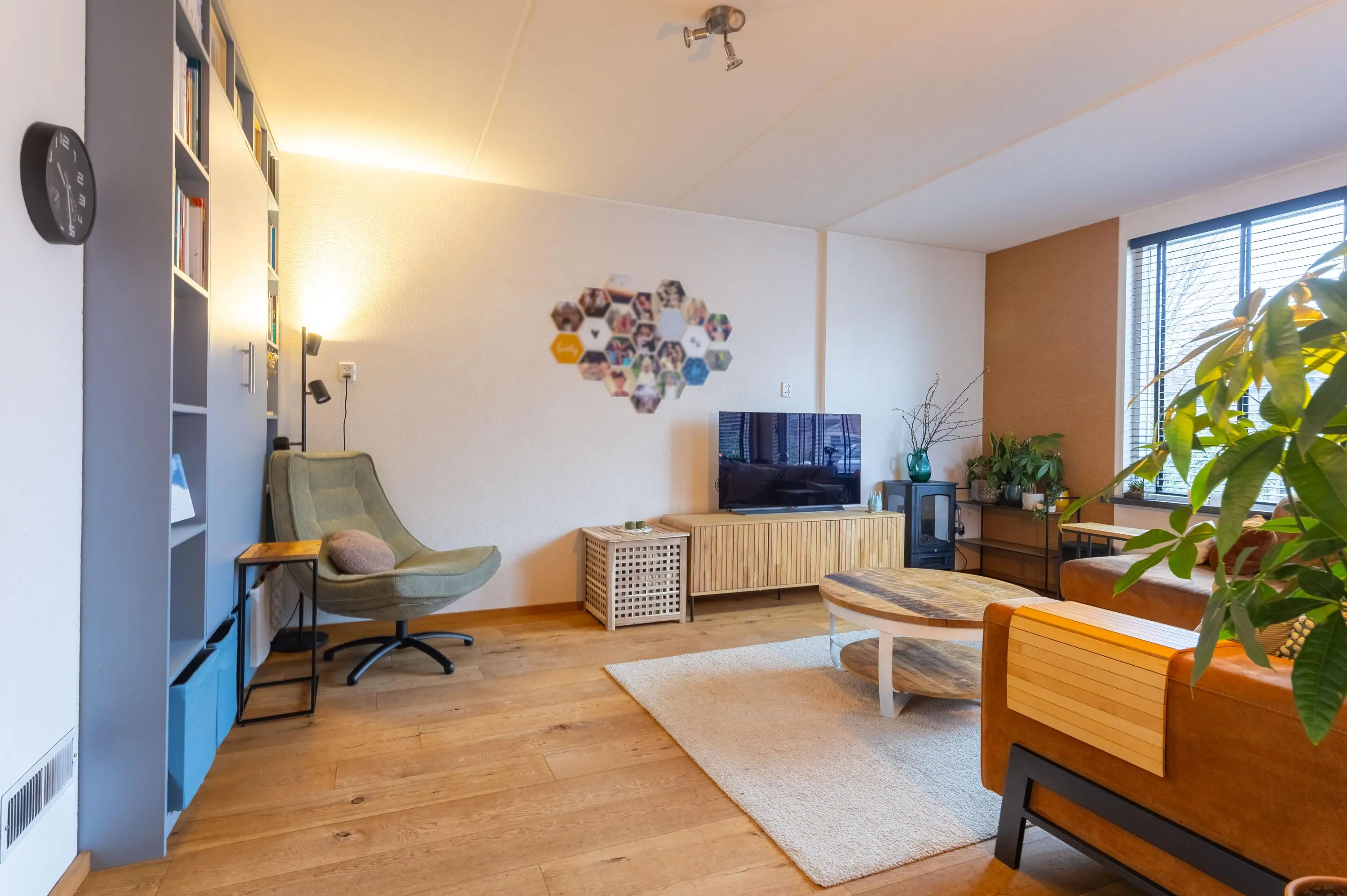 In een rustige en kindvriendelijke omgeving staat deze uitstekend onderhouden gezinswoning met vier slaapkamers. De lichte woonkamer, voorzien van een massief eiken vloer, leidt via een schuifpui naar de aangebouwde veranda, waar binnen en buiten samenkomen. De zonnige tuin op het noordwesten biedt privacy en een fijne plek om te ontspannen, met een ruime vrijstaande stenen schuur voor extra opslag.