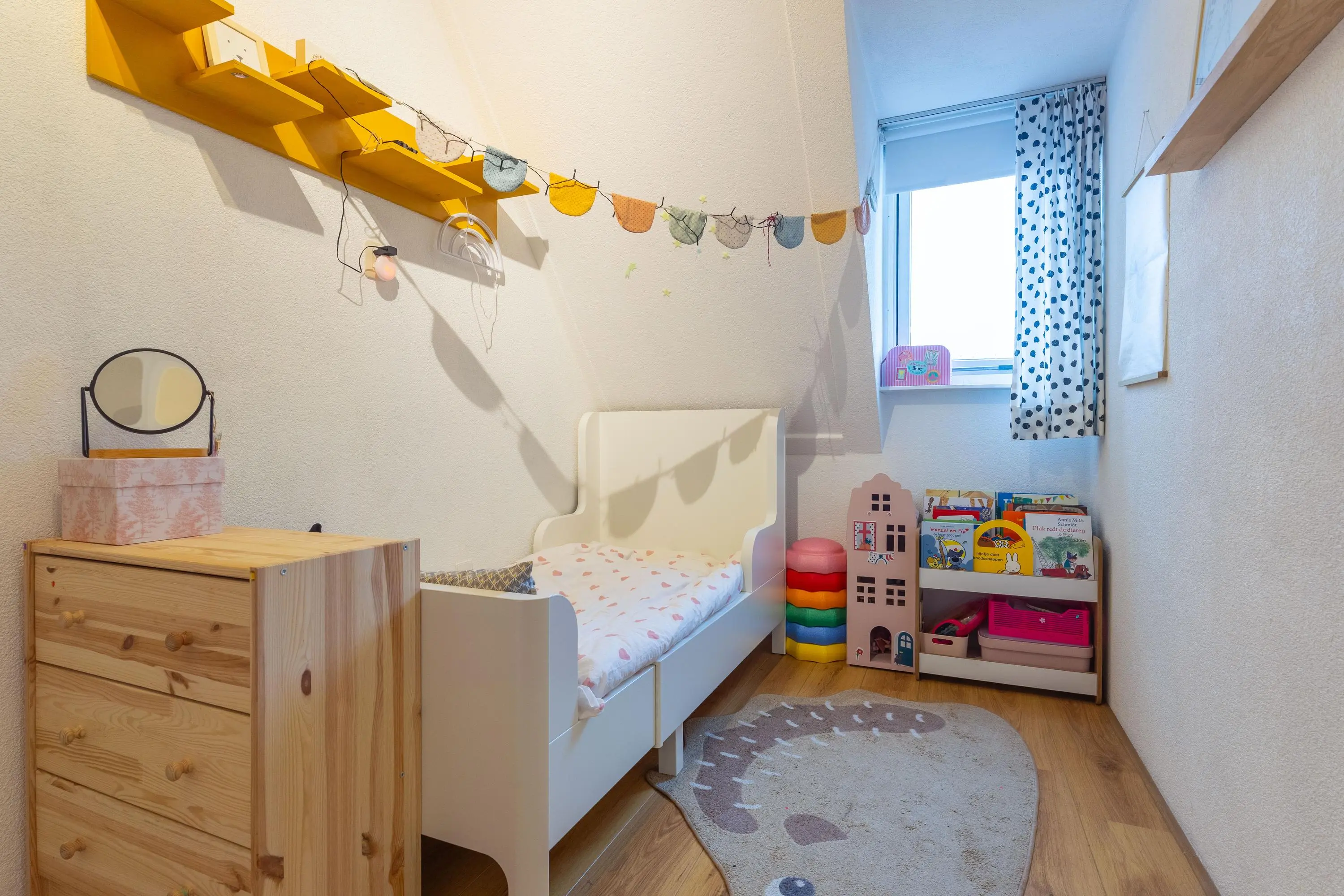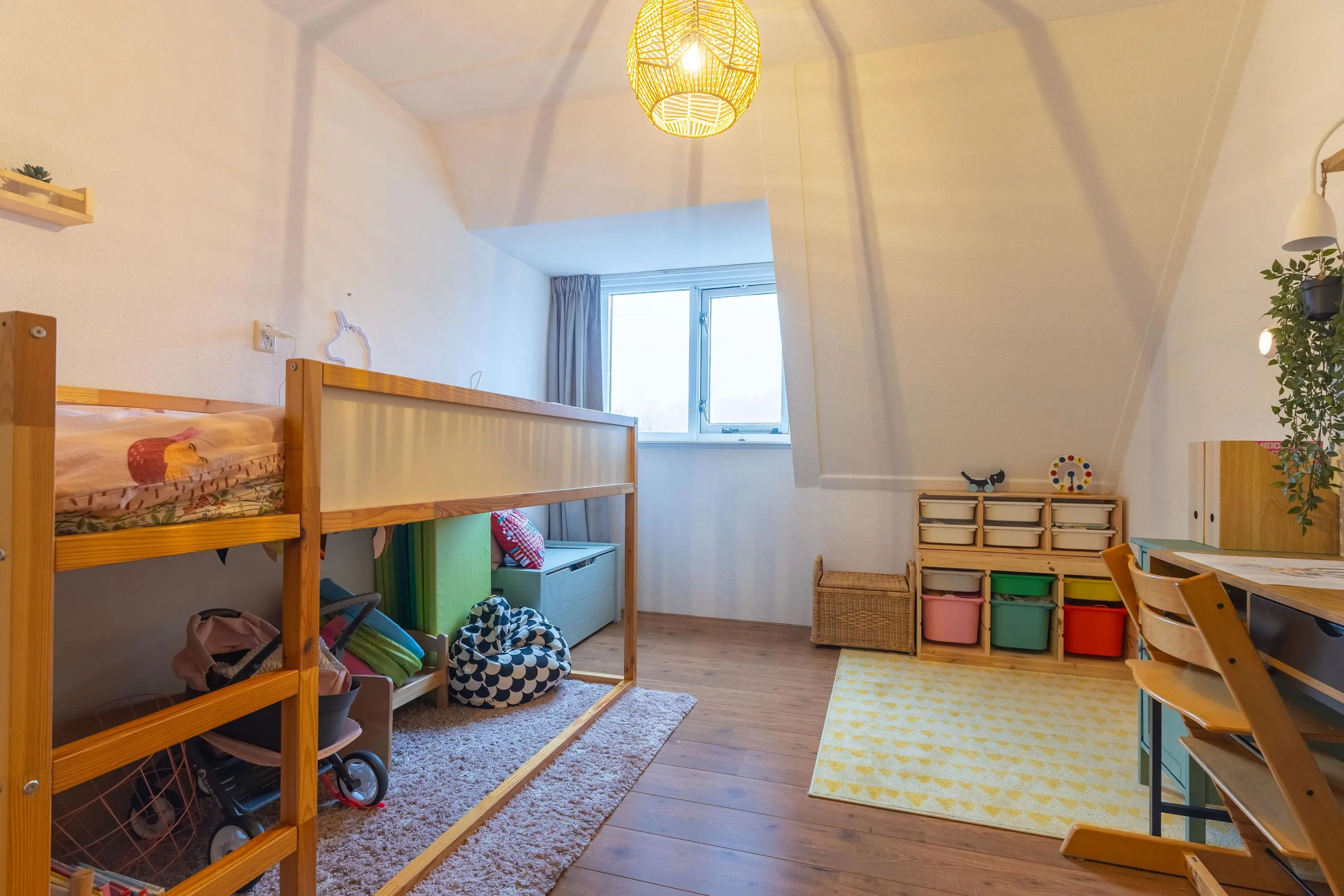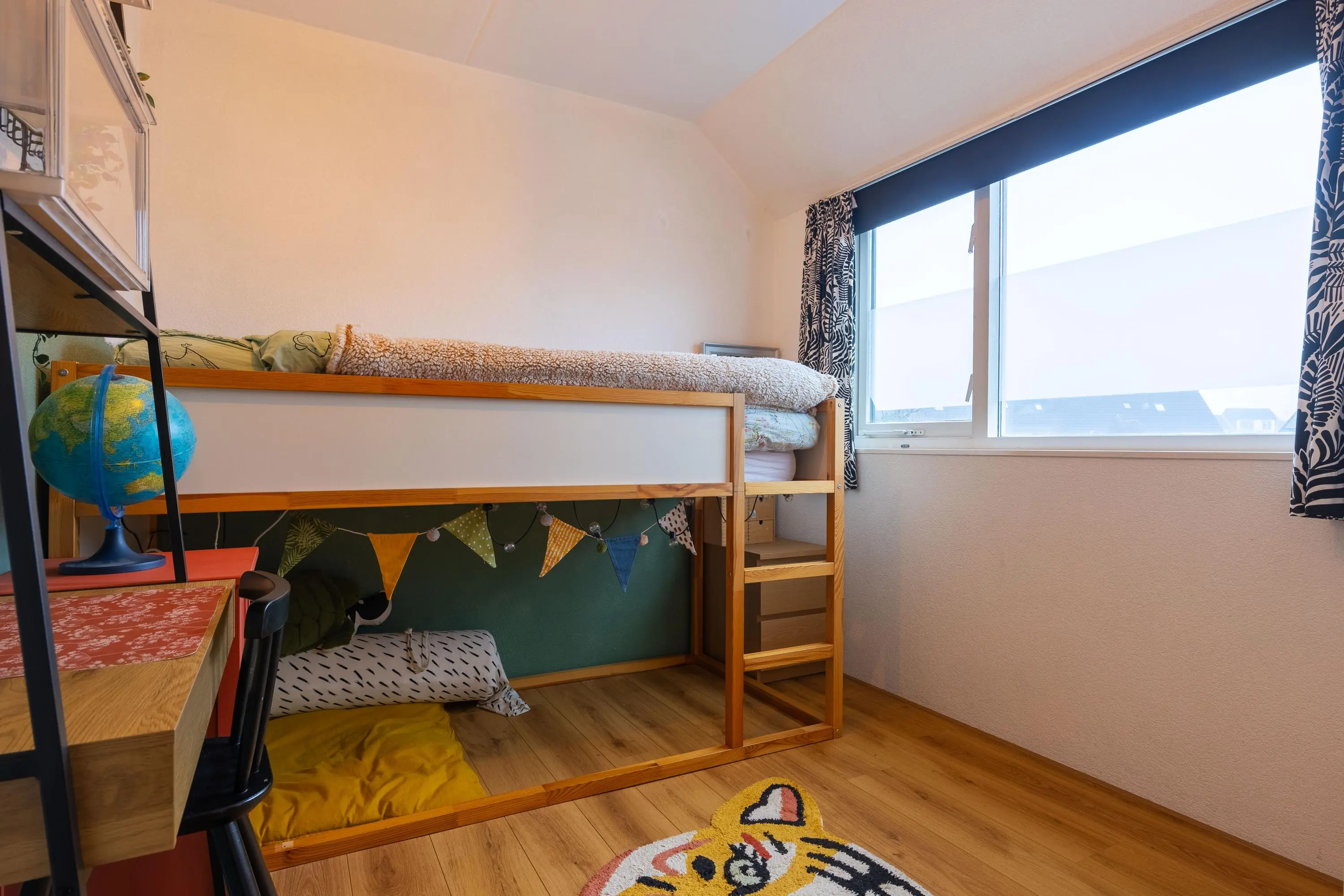 De nette keuken en moderne badkamer zijn klaar voor direct gebruik. Drie ruime slaapkamers bevinden zich op de eerste verdieping. Een dakkapel op de tweede etage zorgt voor een comfortabele vierde slaapkamer met extra licht. De woning is energiezuinig met 10 zonnepanelen en beschikt over energielabel B.