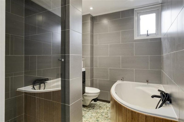 Een badkamer met ligbad, douche, wastafel en tweede toilet – alles wat je nodig hebt voor comfort.