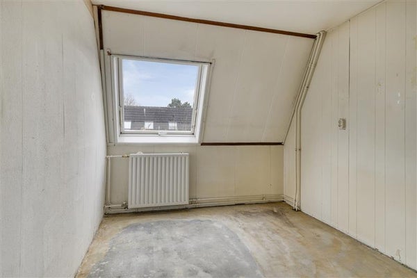 De trap in de woonkamer leidt naar de bovenverdieping. Hier vind je drie ruime slaapkamers die slechts een nieuw laagje verf en vloeren nodig hebben om meteen tot leven te komen. De originele badkamer vraagt om een frisse update, waardoor je alle ruimte hebt om jouw droombadkamer te creëren. Wil je extra opbergruimte? Geen probleem! De woning heeft een vliering die je gemakkelijk via een vlizotrap bereikt. Hier kun je alles kwijt wat je niet dagelijks nodig hebt.
