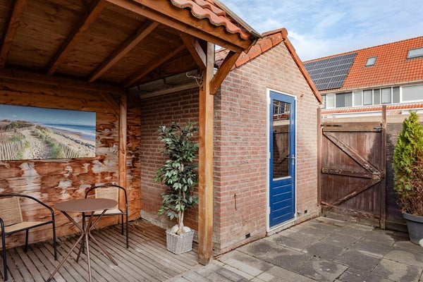 In deze vrijwel volledig bestrate tuin kun je heerlijk genieten van het ochtendzonnetje én van de middagzon. De tuin bevat onder andere een appelboom en rozenstruiken, die in de lente en zomer prachtig in bloei staan en zorgen voor een weelderige, groene uitstraling. Er is een gezellige veranda wat het extra aantrekkelijk maakt. De tuin is via de zijpoort én via het achterom te bereiken en voor uw fietsen en tuinspullen is er een stenen berging met pannen zadeldak, voorzien van verlichting en stopcontact. Echt een fijne tuin!