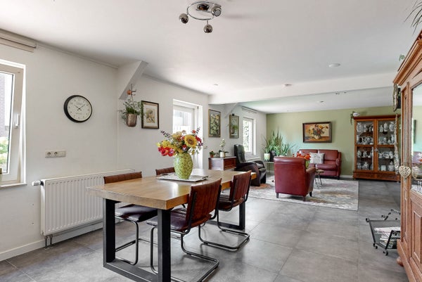 Deze vrijstaande woning in Horn is perfect voor gezinnen die comfortabel willen wonen en misschien ook hun bedrijf aan huis willen hebben. De woning biedt een lichte woonkamer met grote ramen, een moderne open leefkeuken (2021) met veel voorzieningen, en een praktische bijkeuken. Met vijf slaapkamers, waarvan drie op de eerste verdieping en twee op zolder, is er voldoende ruimte voor iedereen. De bijbehorende dependance woning is ideaal voor gasten of als kantoor en heeft een eigen open keuken en badkamer.