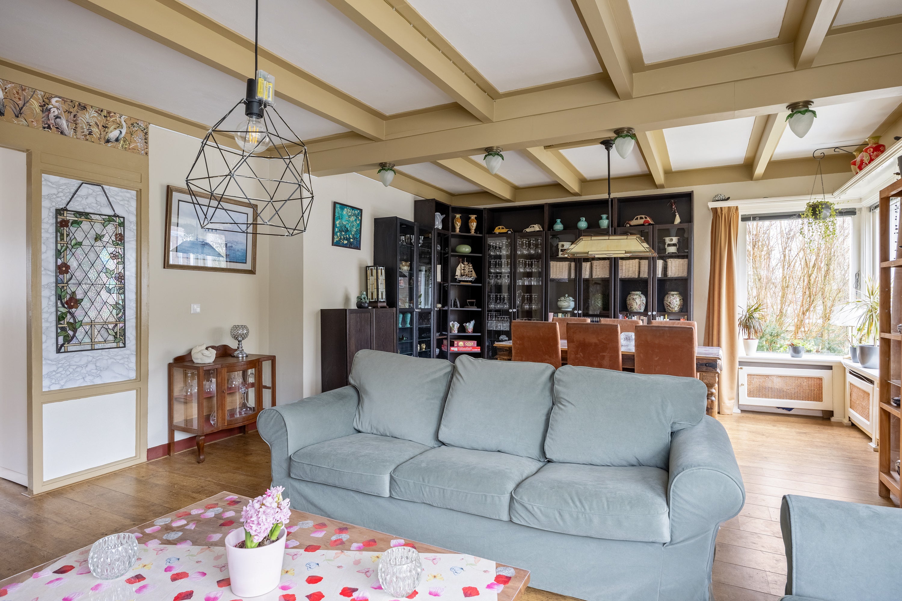 Aan de rand van Hornhuizen staat een vrijstaande woning uit de jaren dertig. Deze woning, omgeven door het mooie Groninger platteland, biedt een rustige levensstijl met het Nationaal Park Lauwersoog en de Waddenzee in de nabijheid. Met een perceeloppervlakte van 494 m² en een woonoppervlakte van 111 m², is het huis voorzien van 5 kamers, waaronder 3 slaapkamers. De woonkamer van 31 m² heeft een balkenplafond en een aansluiting voor een houtkachel, en grenst aan een moderne woonkeuken van 16 m². De badkamer is uitgerust met een inloopdouche. De woning heeft een grote houten garage/schuur van 71 m² en een achtertuin op het westen, ideaal voor de avondzon. Voorzieningen zoals CV-verwarming, zonnepanelen, en dubbele beglazing maken het comfortabel. Deze woning combineert karakter met moderne gemakken.