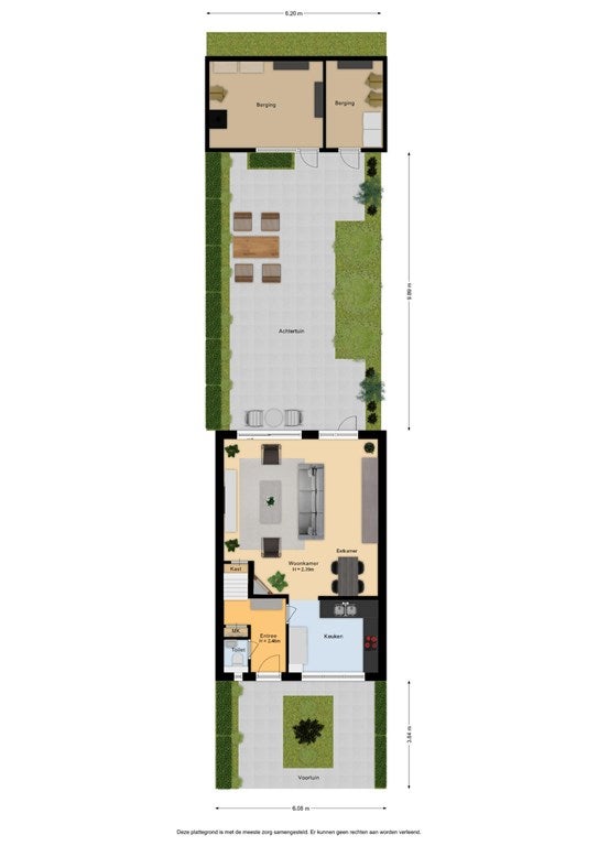 - Aanwezig (88 m², gelegen op het zuidoosten)
