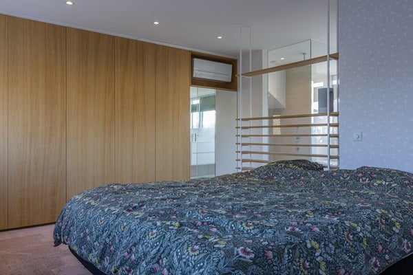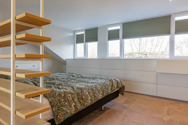 De zolderetage is wel gemoderniseerd... en hoe. Via de vaste trap kom je op de overloop. Aan de voorzijde van de woning is een grote slaapkamer gerealiseerd met inbouwkasten op maat. De badkamer is modern en voorzien van inloopdouche, toilet en dubbele wastafel met meubel.