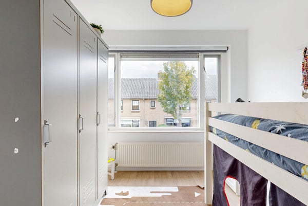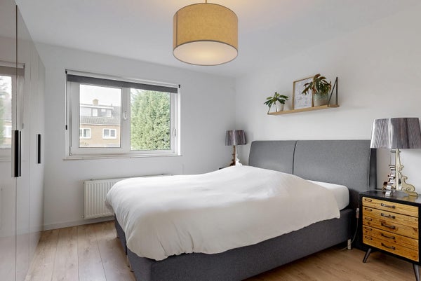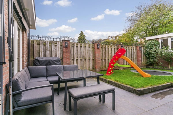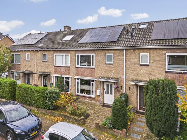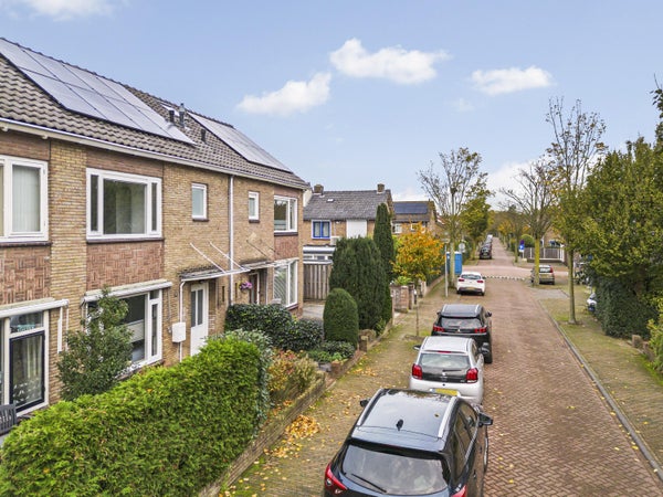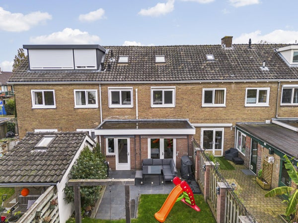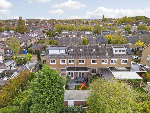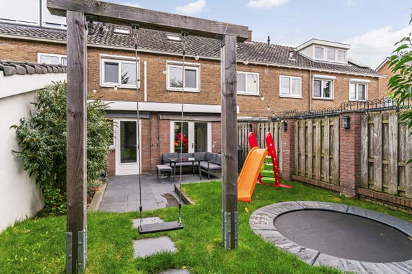 De indeling omvat een lichte woonkamer met open keuken en toegang tot de zonnige achtertuin op het westen, perfect voor buitenleven. Boven zijn er drie slaapkamers en een moderne badkamer. De tweede verdieping biedt extra ruimte. De tuin beschikt over een stenen berging van 7 m², ideaal voor opslag. Dit huis is recent goed onderhouden en aantrekkelijk geprijsd.
