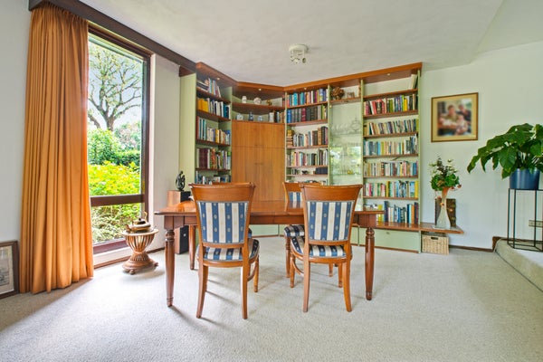 Hal, wijn-/provisieruimte, royale werkkamer met kastenwand en sfeervolle open haard. Vanuit de hal tevens toegang tot een grote speelkamer met bergkast. Deze verdieping is multifunctioneel inzetbaar, bijvoorbeeld als kantoor, hobbyruimte of speelverdieping.