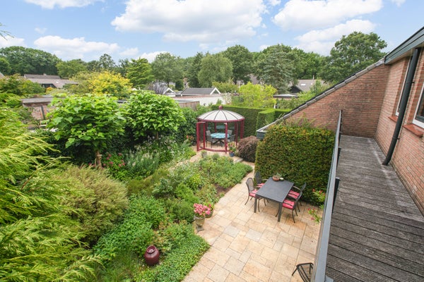 De verzorgde achtertuin is voorzien van meerdere terrassen, waar gedurende de hele dag een plekje in de zon of schaduw te vinden is. Dankzij de situering van de omliggende bebouwing, die tevens laag is, is er veel uitzicht op groen. Dit geeft een aangenaam gevoel van privacy en openheid. De achtertuin is voorzien van buitenverlichting.