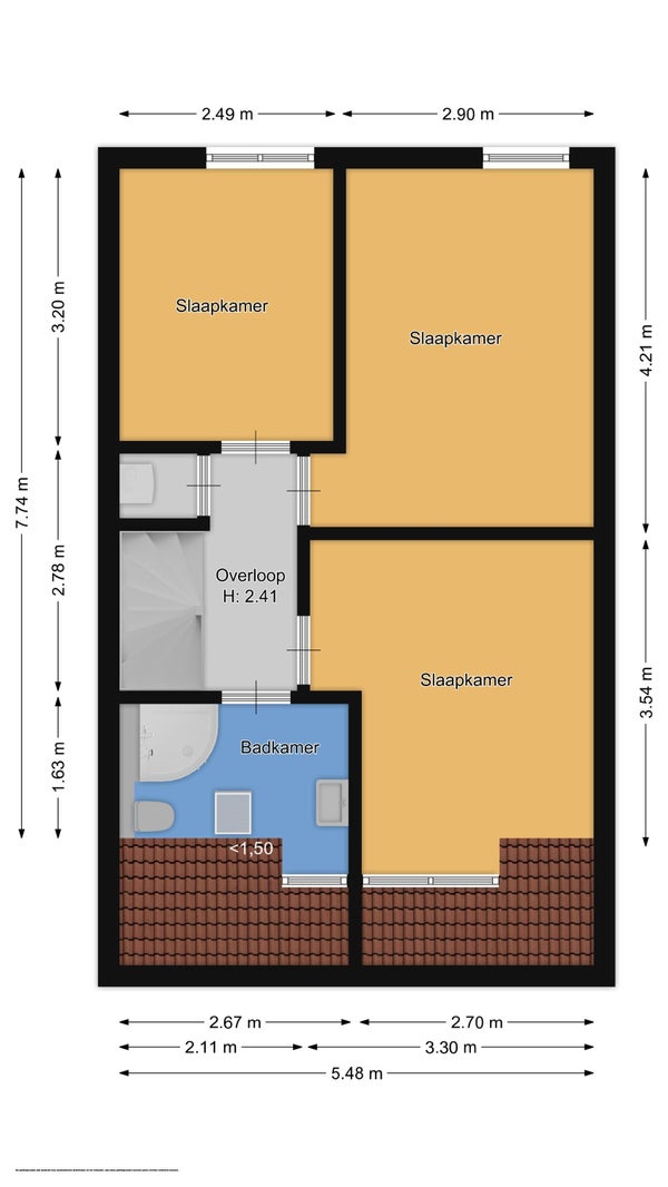- De tussenwoning heeft een woonoppervlakte van 102 m² en beschikt over 4 kamers, waarvan 3 slaapkamers;