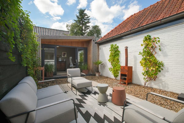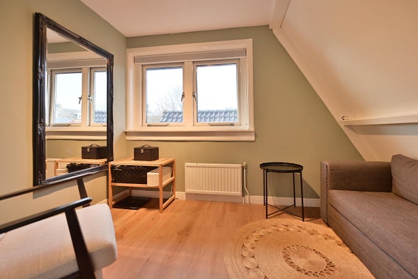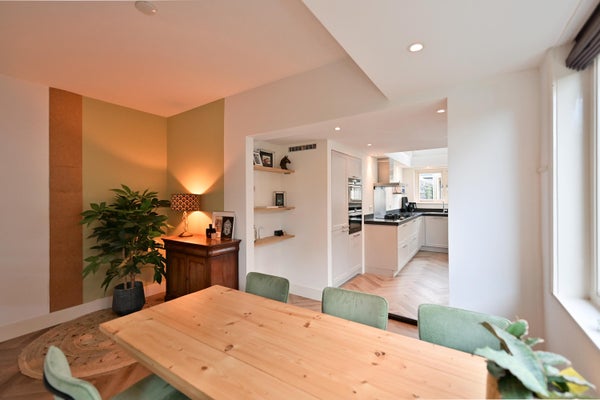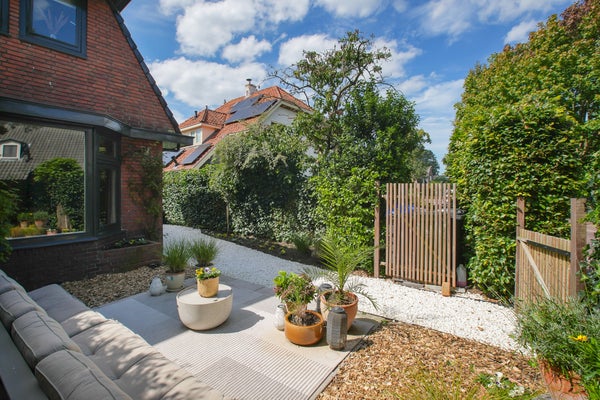 Deze charmante 2-onder-1-kapwoning uit 1934, gelegen in een kindvriendelijke wijk met een verzorgde voor- en achtertuin op het zuidwesten, biedt alles wat je zoekt. De woning beschikt over een ruime woonkamer met een moderne haard en sfeervolle erker. De open keuken is voorzien van hoogwaardige apparatuur, waaronder een stoomoven en vaatwasser. Op de eerste verdieping zijn twee slaapkamers en een moderne badkamer met inloopdouche. De tweede verdieping biedt ruimte voor een werkplek en extra opslag. De verzorgde achtertuin heeft volledige privacy en een multifunctioneel bijgebouw van 11 m², ideaal als kantoor of speelruimte. Met een totale woonoppervlakte van 101 m² en drie verdiepingen, is deze woning perfect voor gezinnen.