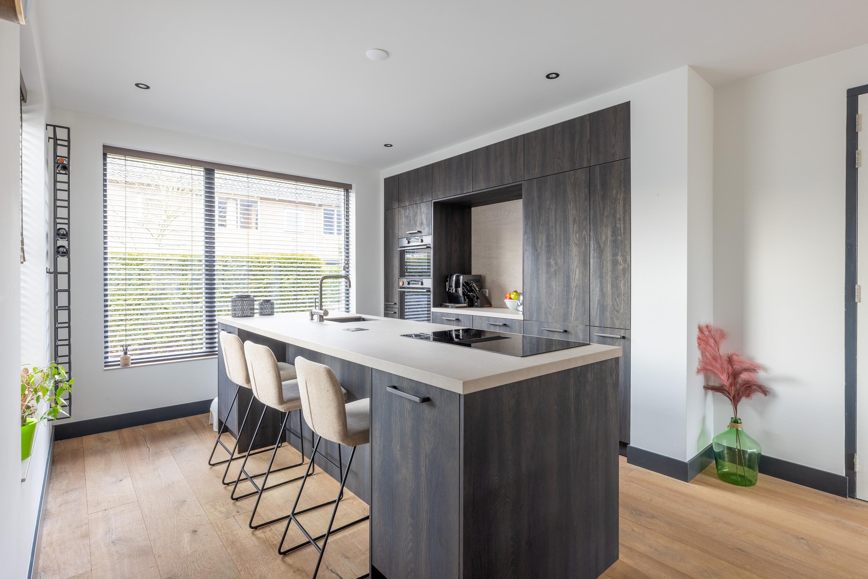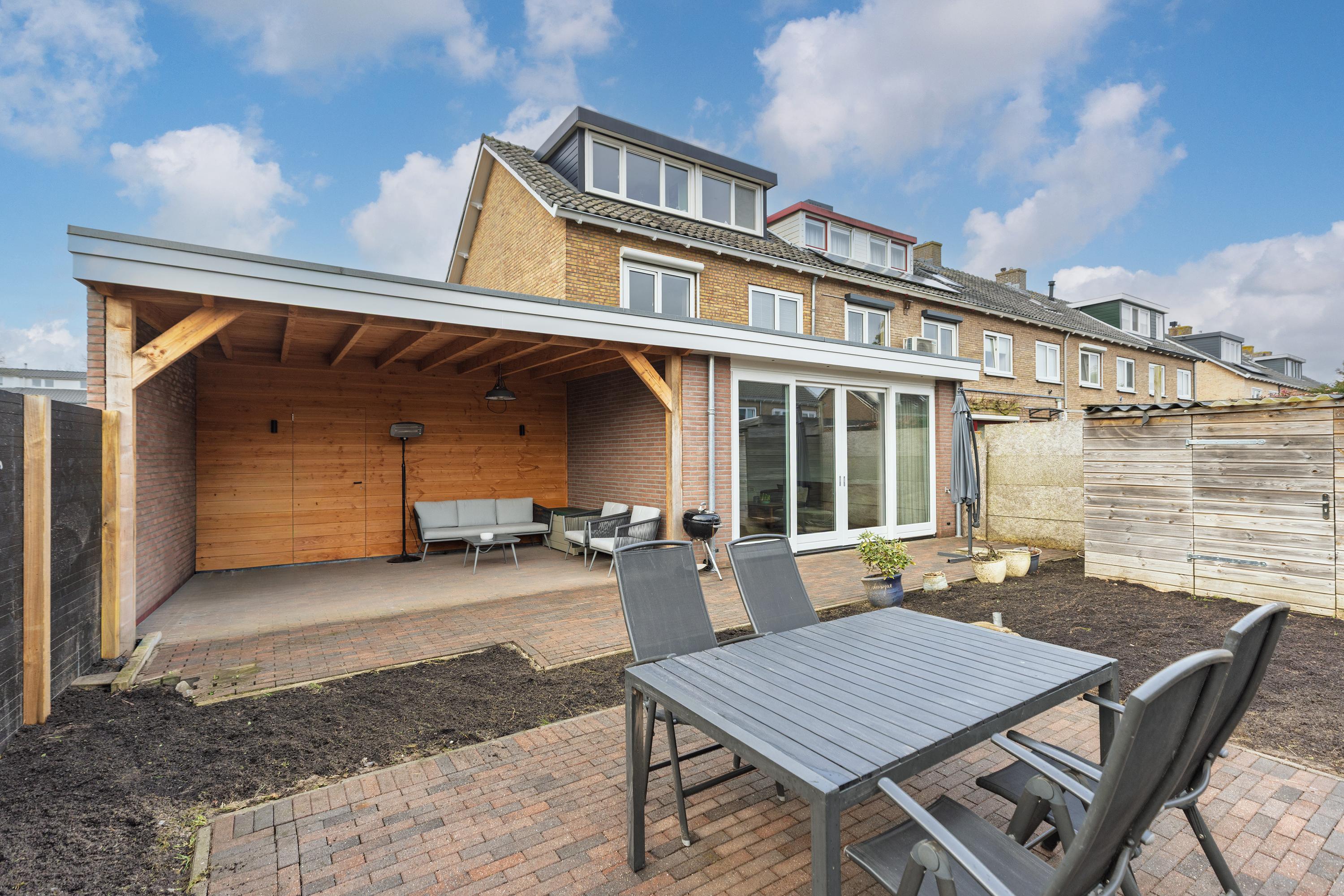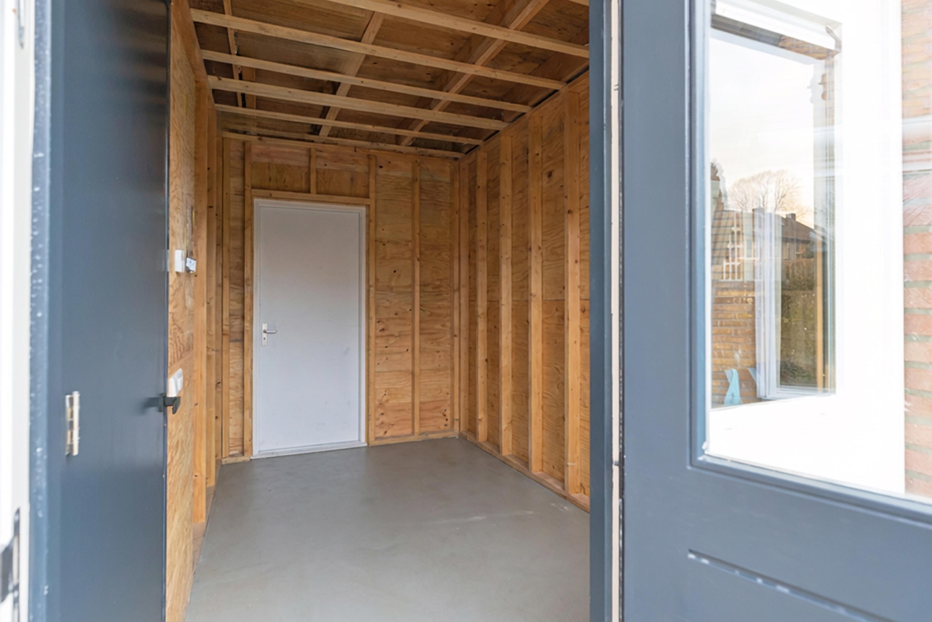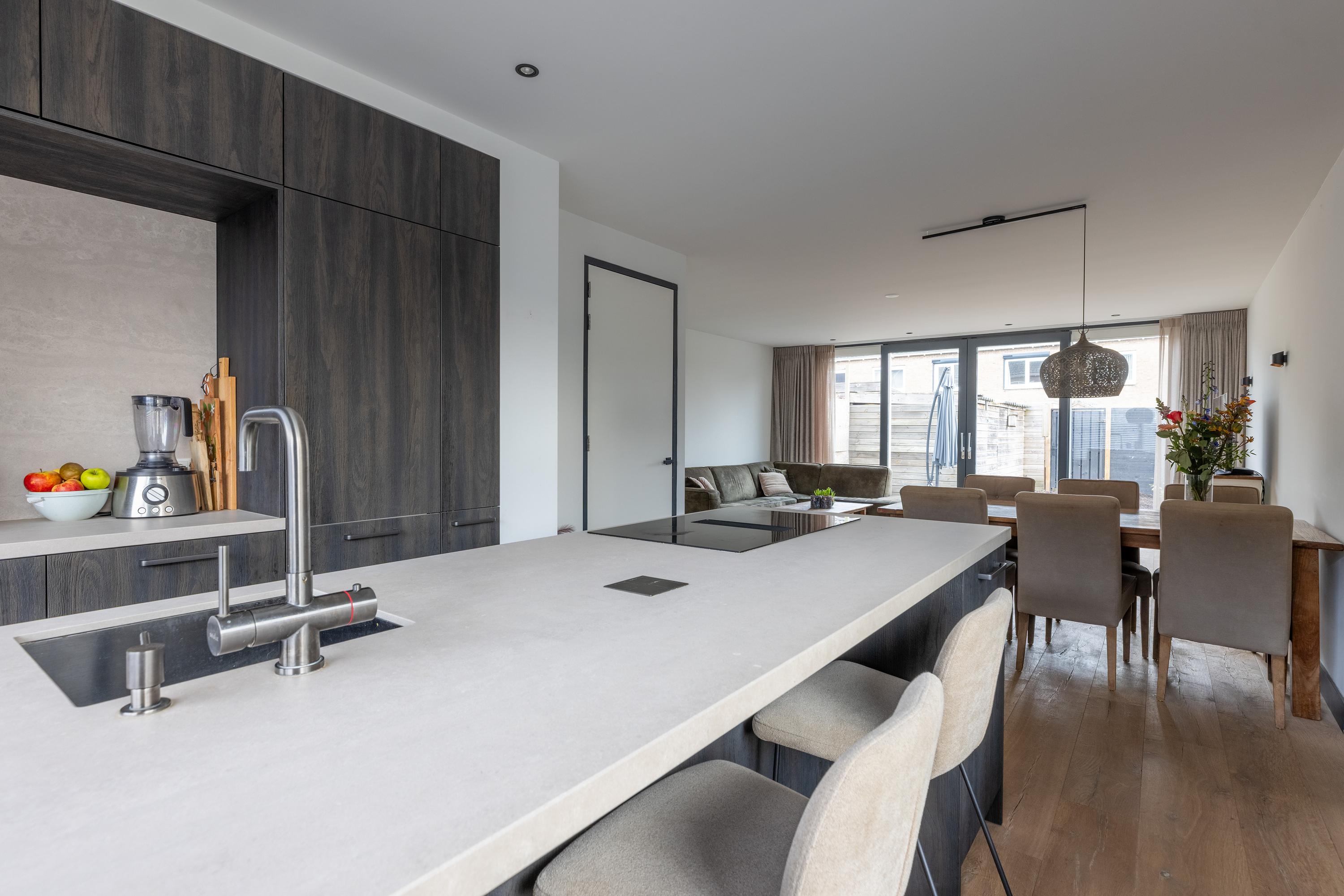 Aan de Joost Banckertstraat 12 in Huizen staat een ruime hoek-eengezinswoning uit 1955 met een woonoppervlak van circa 130 m². Deze woning heeft drie woonlagen, een kelder van 8 m² en drie slaapkamers. De 12 meter brede achtertuin ligt op het oosten en de uitbouw, grote raampartijen en veranda zorgen voor veel licht en leefruimte. De luxe open keuken, vernieuwd in 2023, is uitgerust met inbouwapparatuur en biedt een comfortabele kookplek. De begane grond heeft vloerverwarming voor extra comfort.