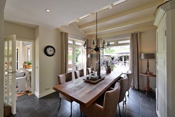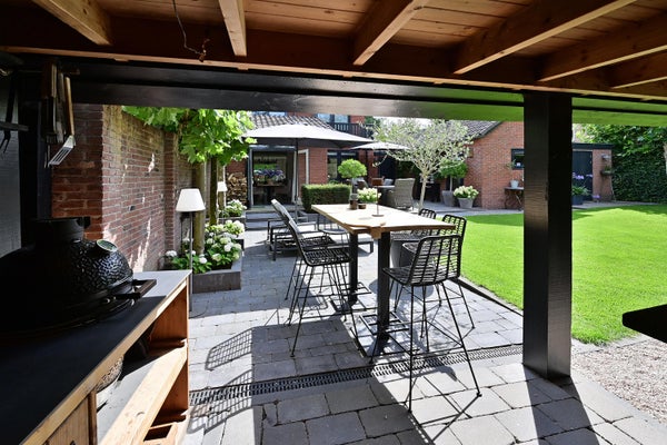 De woning heeft een woonoppervlakte van 175,90 m² verdeeld over drie verdiepingen. De begane grond bestaat uit een hal, lichte woonkamer met open haard, eetkamer met openslaande deuren naar het zonneterras, en een goed uitgeruste keuken. Op de eerste verdieping bevinden zich vier slaapkamers, waaronder een met balkon, en een modern badkamer met inloopdouche. De tweede verdieping biedt een forse slaapkamer en mogelijkheden voor extra slaapkamers. In de tuin met veranda, buitenkeuken en berging kunt u heerlijk ontspannen.