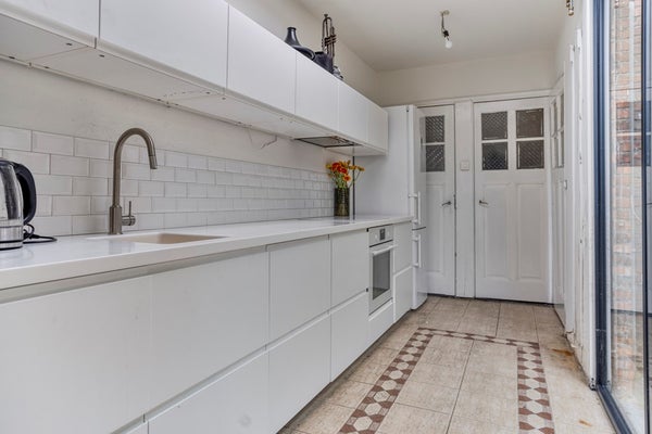- De tussenwoning heeft een woonoppervlakte van 134 m² en beschikt over 3 kamers, waarvan 2 slaapkamers;