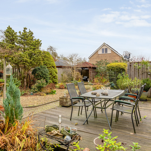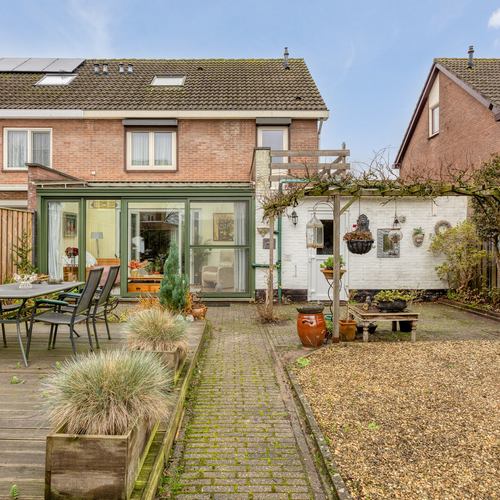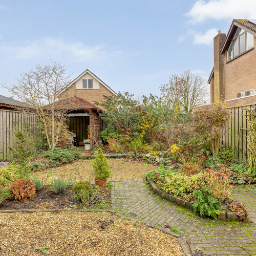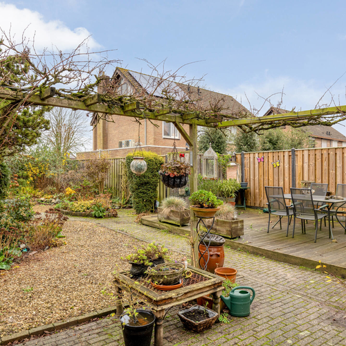 Op de eerste verdieping zijn drie slaapkamers en een gerenoveerde badkamer. De tweede verdieping biedt nog twee slaapkamers, waarvan één perfect als hobby- of studieruimte kan dienen. De oost-georiënteerde achtertuin heeft verschillende terrassen en biedt privacy, met een achterom voor extra gemak.