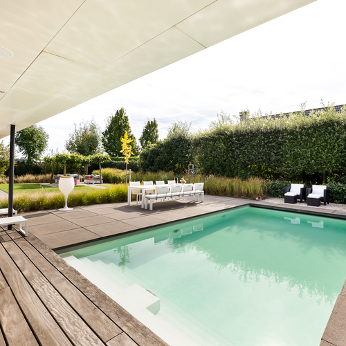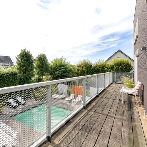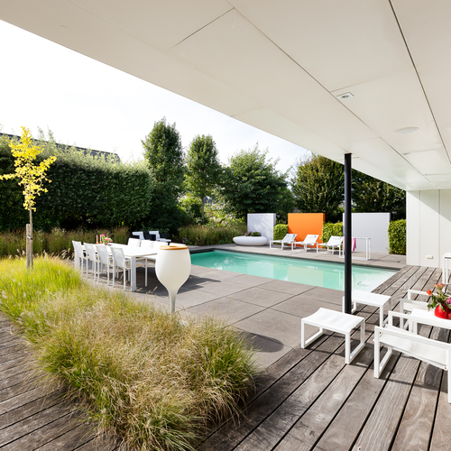 Deze prachtige woning ligt aan de rand van de gewilde woonwijk Groote Kreek op een riante kavel met een weids uitzicht. De strakke vormgeving en verfijnde detaillering geven de woning een moderne uitstraling. De buitenruimte is zorgvuldig aangelegd met verschillende terrassen en een verwarmd zoutwaterzwembad, dat is voorzien van een brede trap en loungeplekken. Binnen is de ruime woonkeuken het kloppend hart van de woning, met hoogwaardige Gaggenau-apparatuur en toegang tot het terras. Er zijn twee slaapkamers op de begane grond, met een badkamer met sauna en directe toegang tot het zwembad. De eerste verdieping heeft een ruime overloop, twee slaapkamers en een luxe badkamer. De woning is traditioneel gebouwd en beschikt over een energielabel A+++, vloerverwarming en zonnepanelen.
