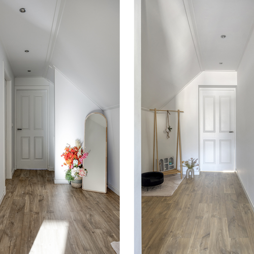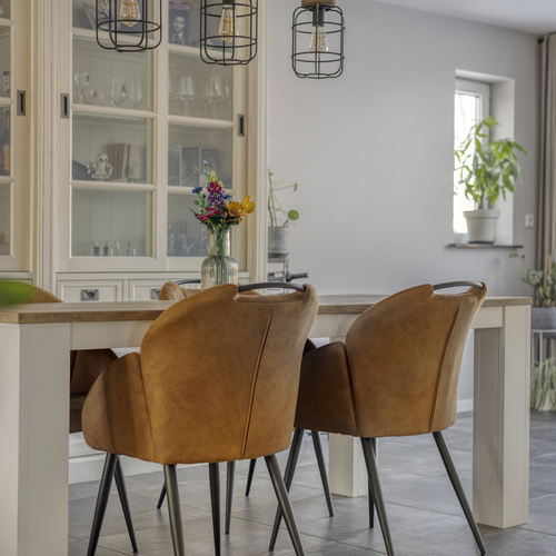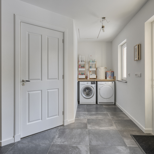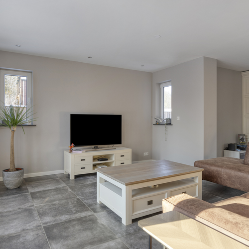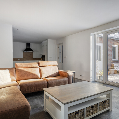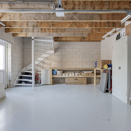 Bij binnenkomst vind je een ruime oprit, een hal met toilet en een moderne woonkamer die veel lichtinval heeft. De keuken, ook uit 2019, is landelijk wit en van alle gemakken voorzien. De bijkeuken bevat de hybride warmtepomp en biedt extra opslagruimte en toegang tot de badkamer.