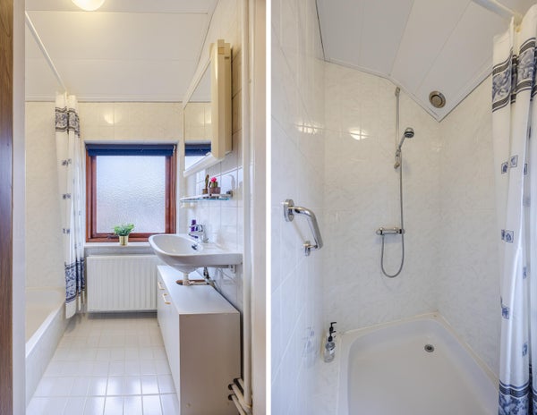 De woning beschikt over een ruime woonkamer met veel lichtinval, een keuken met voldoende ruimte voor een ontbijttafel, en een bijkeuken die toegang biedt tot de tuin. Op de eerste verdieping vindt u drie slaapkamers en een badkamer met douche en wastafel. De bergzolder biedt extra opslagruimte.